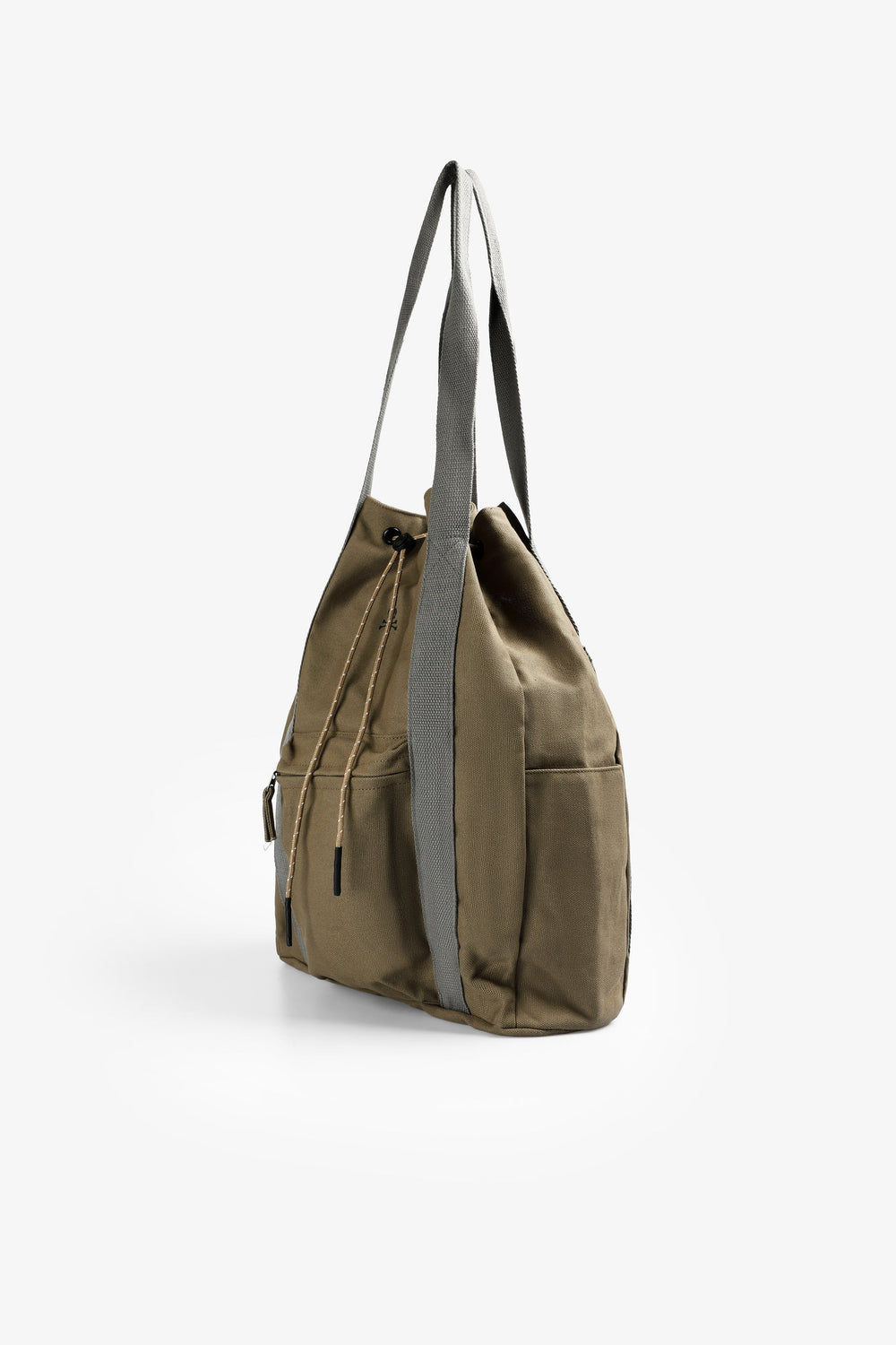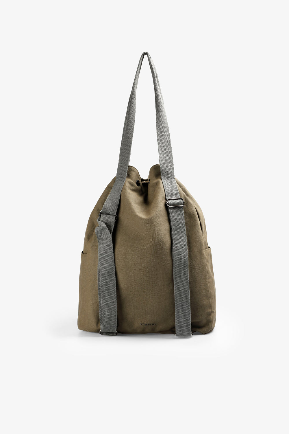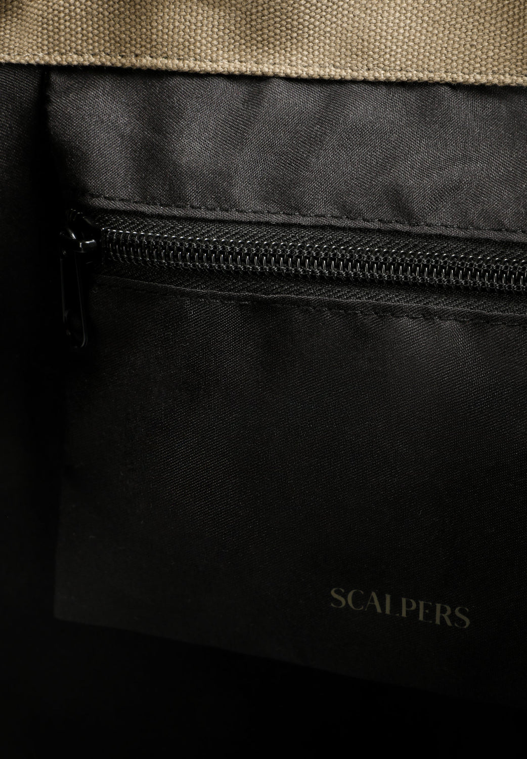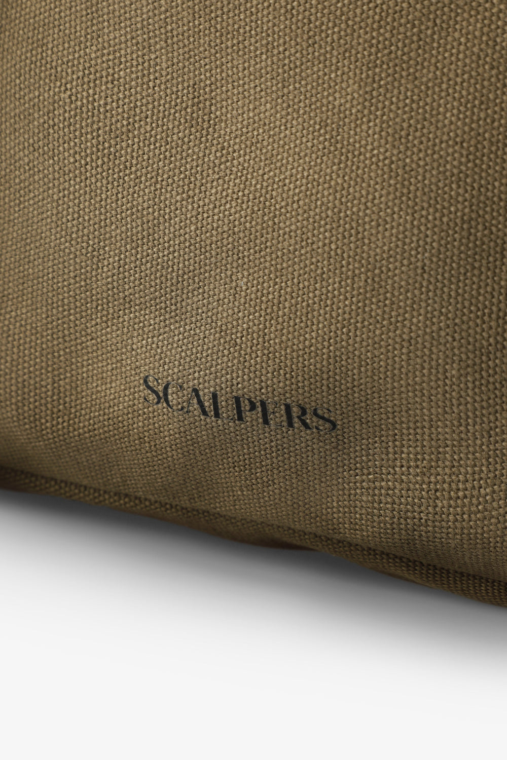 Bag made of 100% cotton. Double strap. Adjustable zip, inner pocket and outside cargo-style pocket. Contrast skull and logo detail: