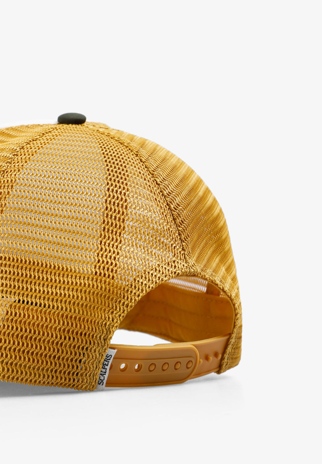 Trucker cap made of cotton blend fabric. Mesh back. Contrast visor and front logo detail.