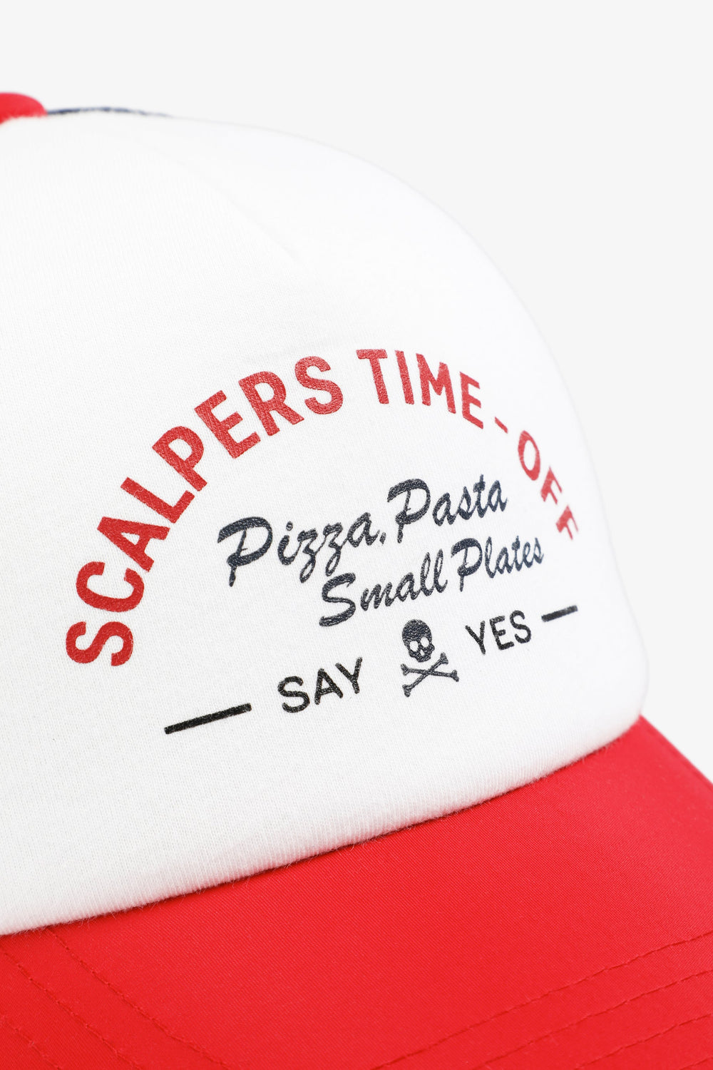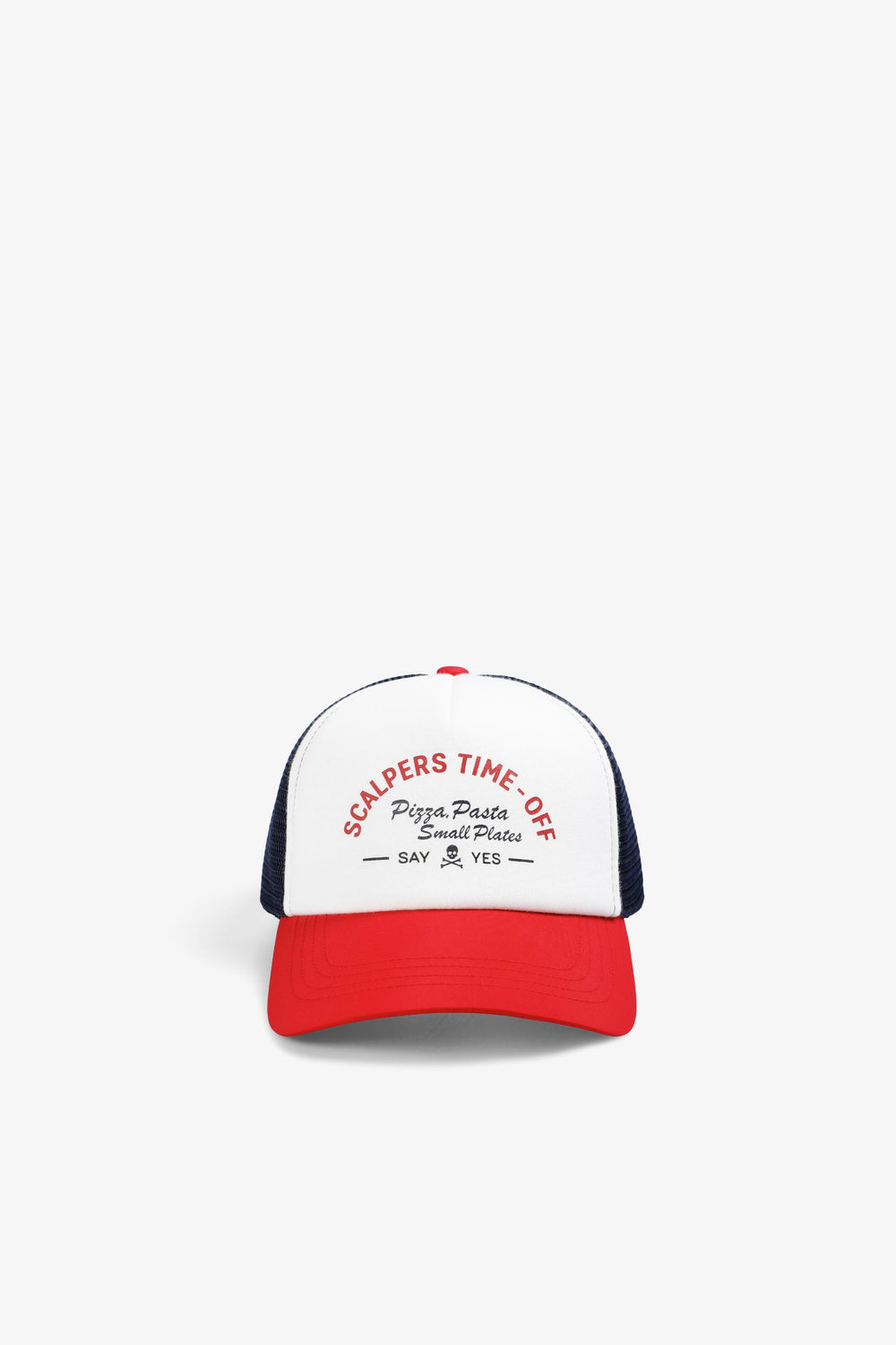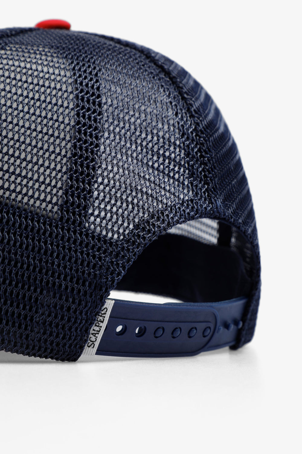 Trucker cap made of cotton and technical fabric blend with mesh back. Contrast visor and front logo print detail.