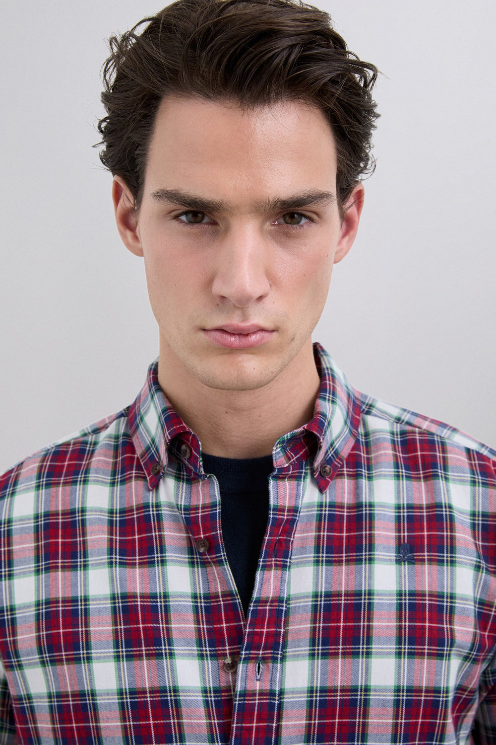 Shirt made of tartan BCI cotton. Regular fit, collar with buttons and button fastening. Long sleeves with buttoned cuffs and contrast embroidered skull on the chest.