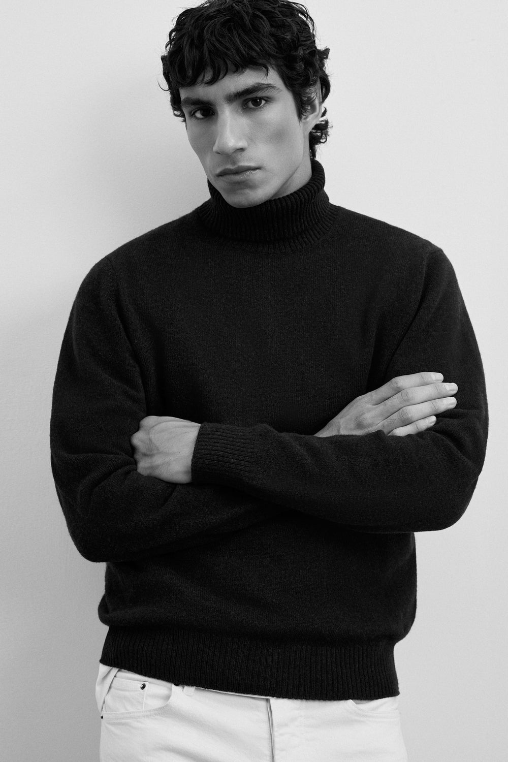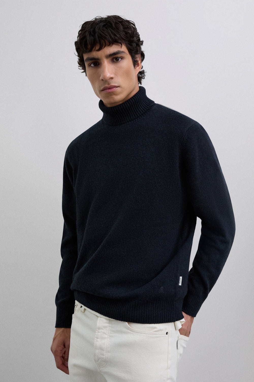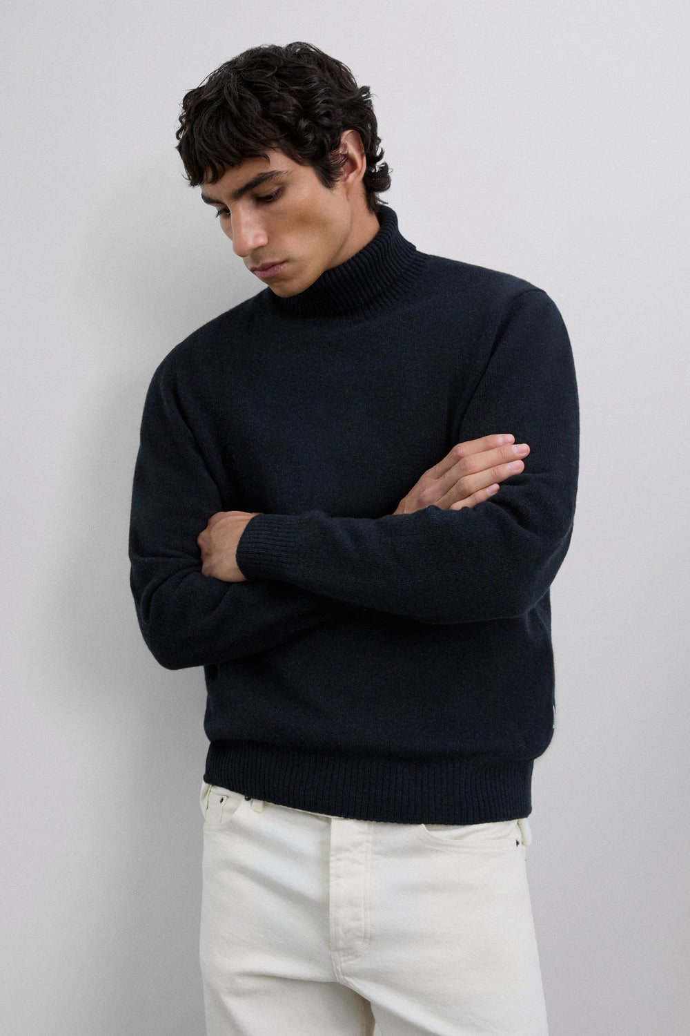 Sweater made of a wool and cashmere blend. High collar. Long sleeves. Ribbed trim.