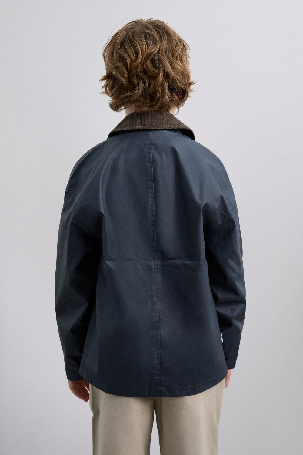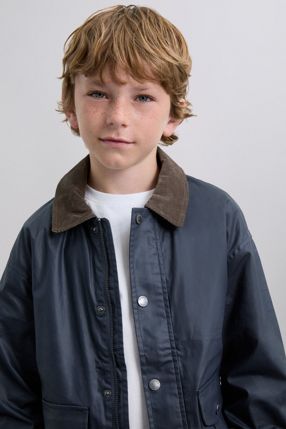 Jacket made of a technical fabric. Contrast shirt collar. Regular Fit. Button fastening. Front button-up pockets. Long sleeves.