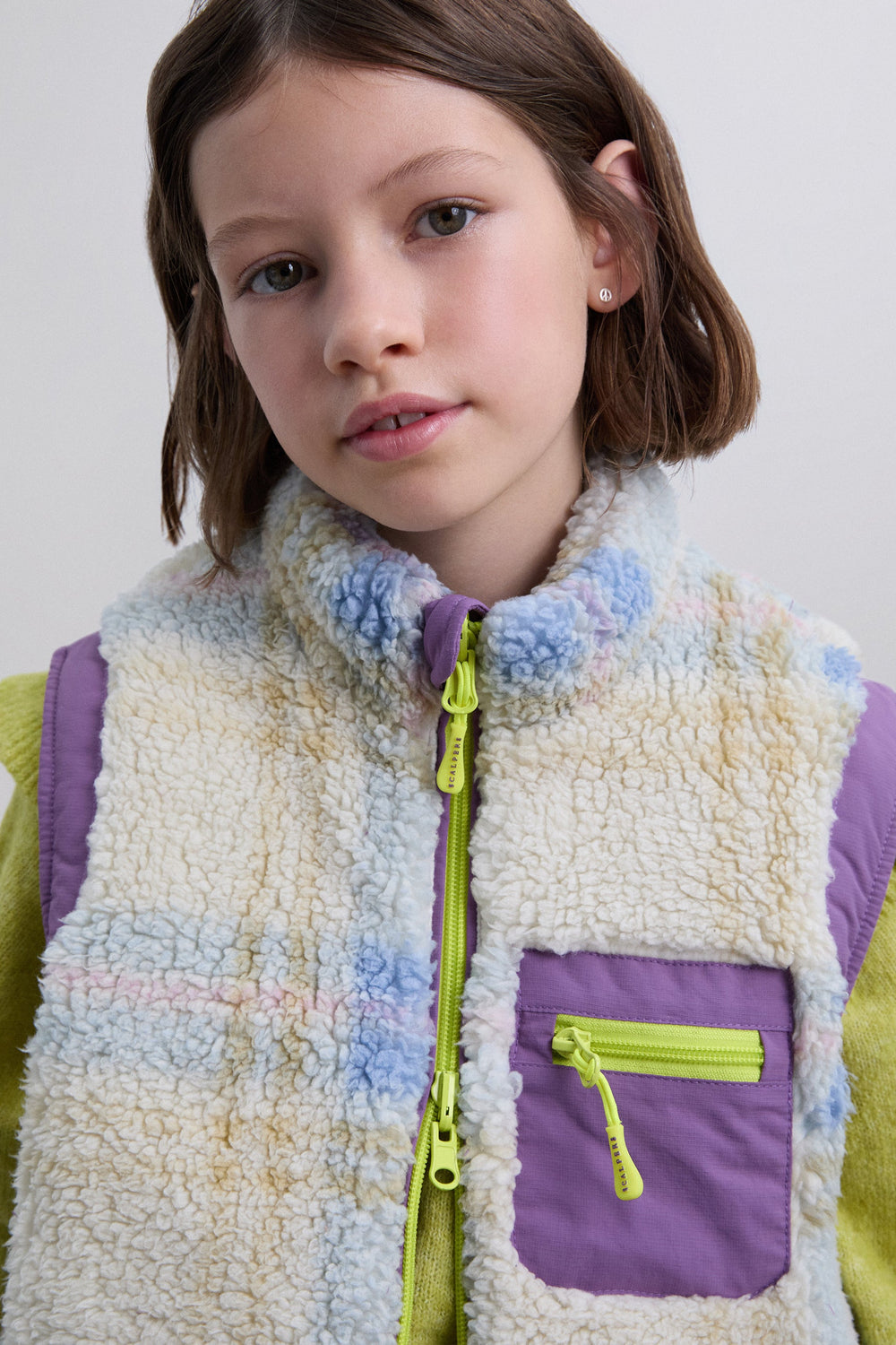 Reflective vest made of synthetic blend fabric. Contrast trim. Zipped chest pocket.