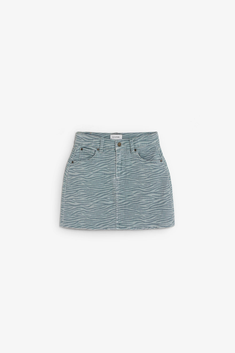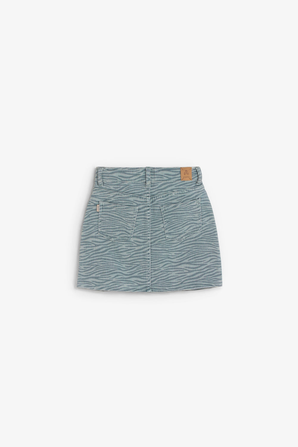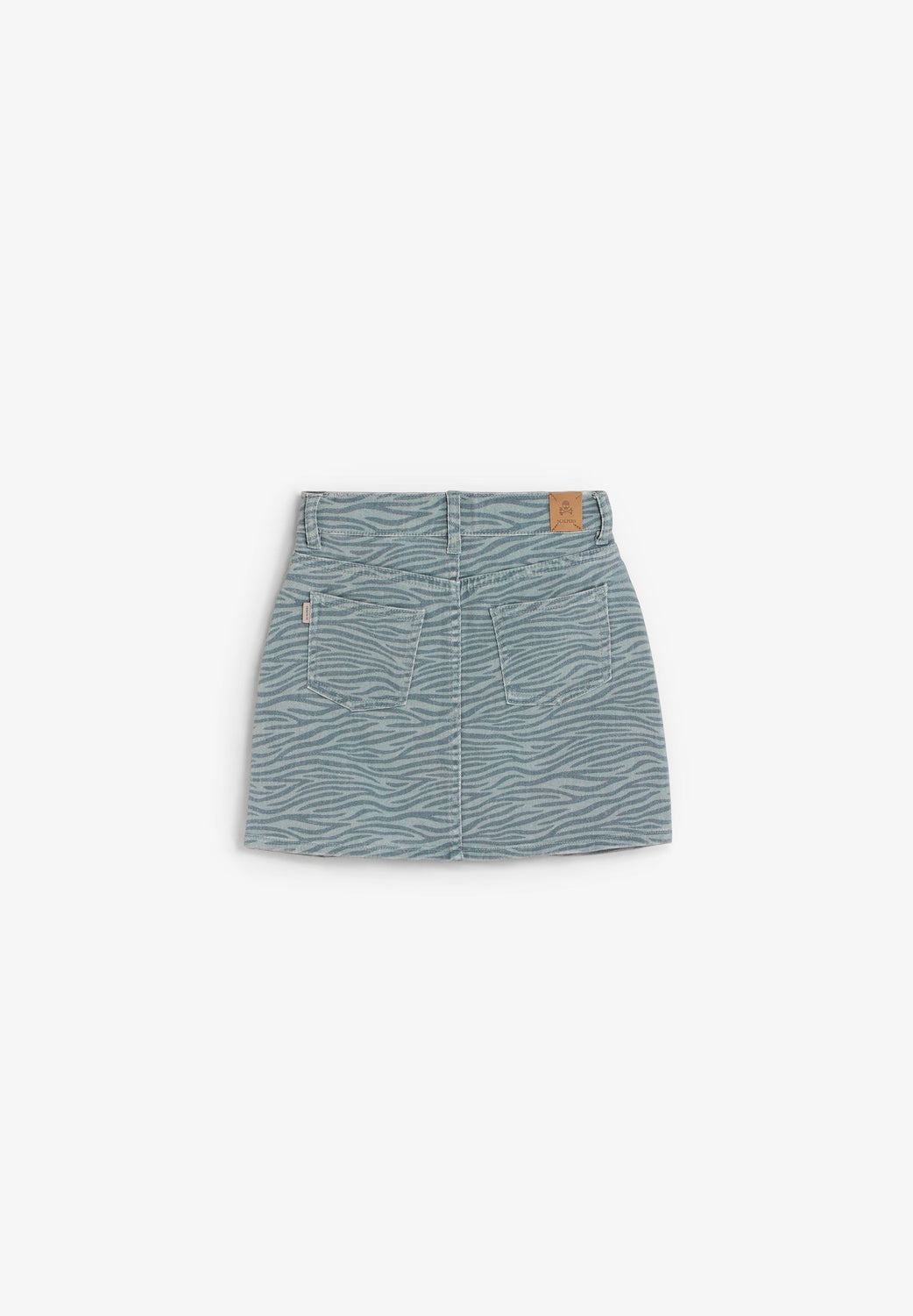 Mini skirt made of 98% organic BCI cotton. Front button and zip fastening. Pockets on front and back. Zebra print. Label detail on the back.
