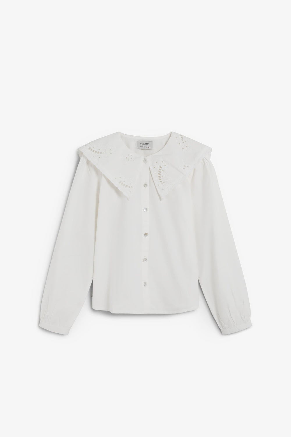 Shirt made of 100% BCI cotton. V-neck with embroidered details and long sleeves with elasticated cuffs. Front button fastening.