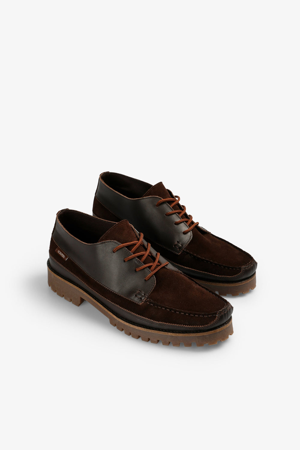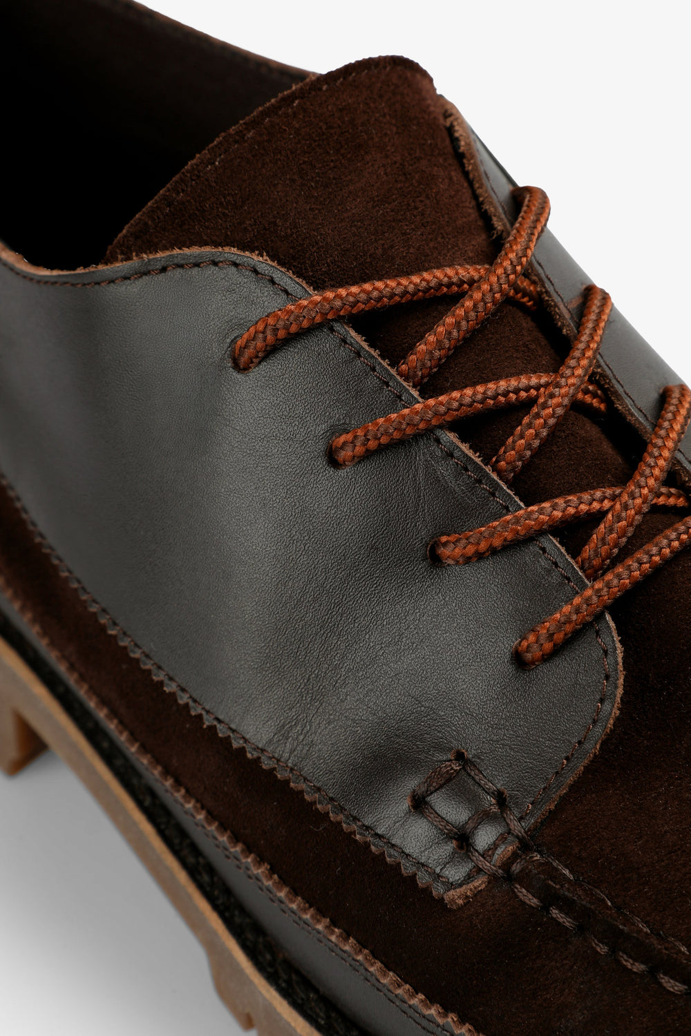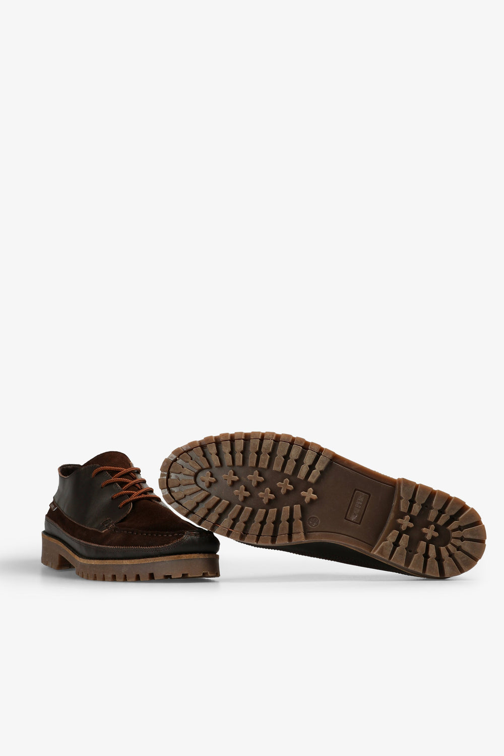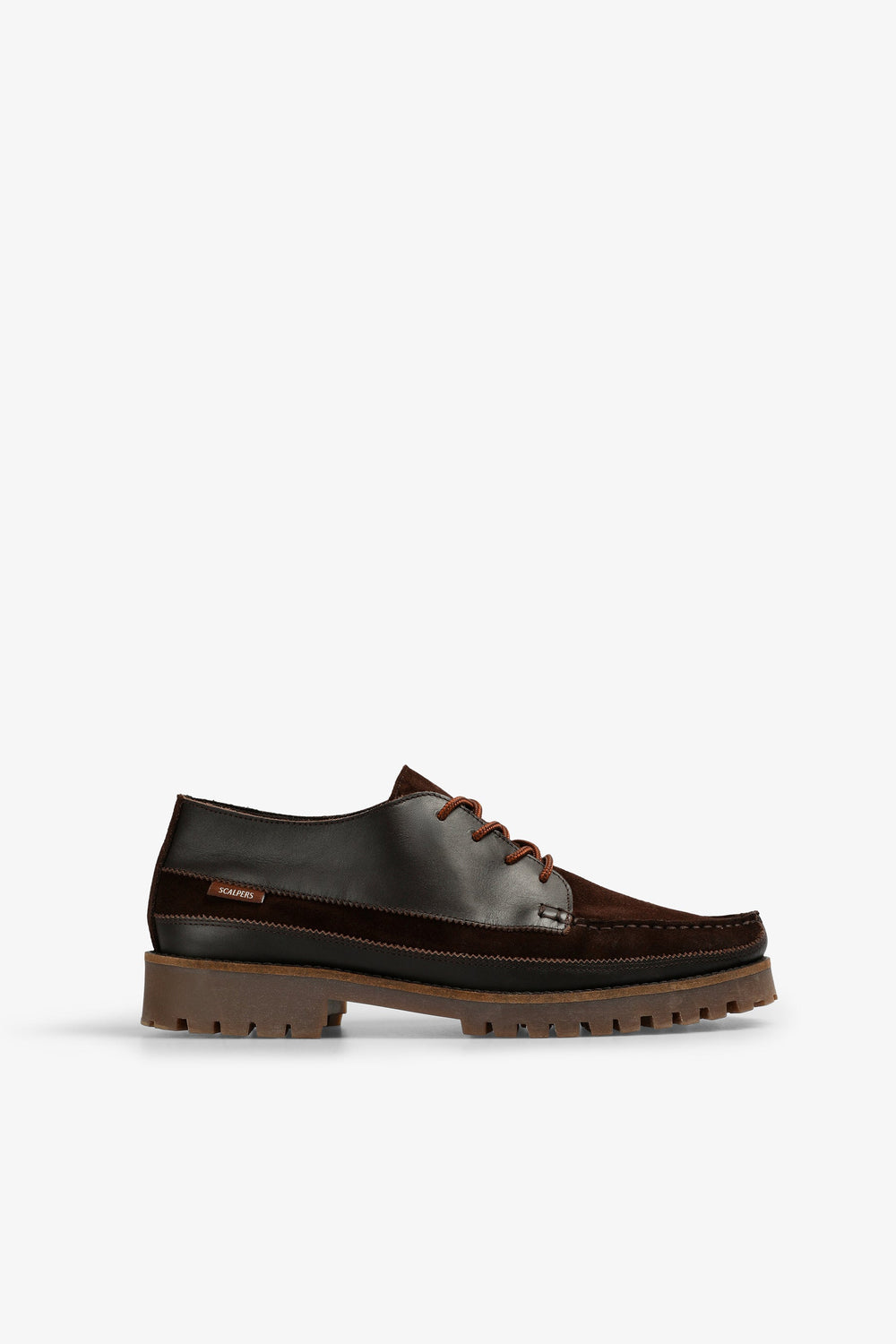 Shoes made of 100% cowhide leather. Contrast lace-up fastening Label detail on heel. Track soles.