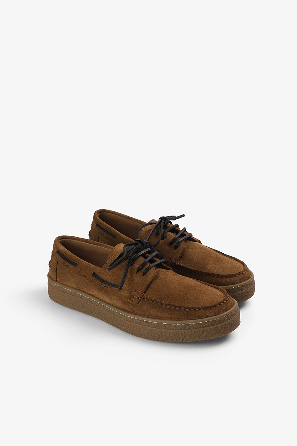 Deck shoes made of 100% cowhide leather. Contrast lace-up fastening Contrast details.