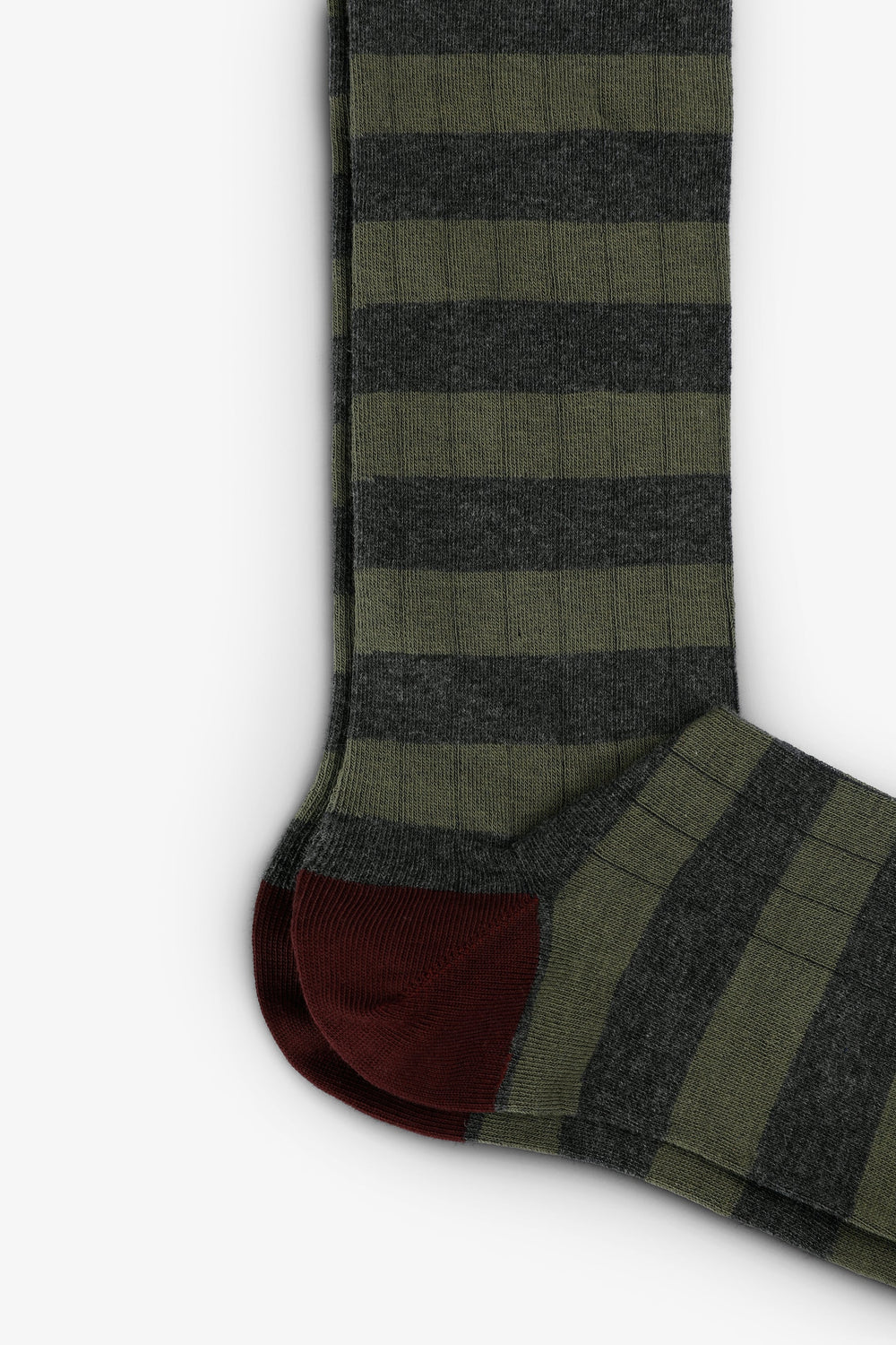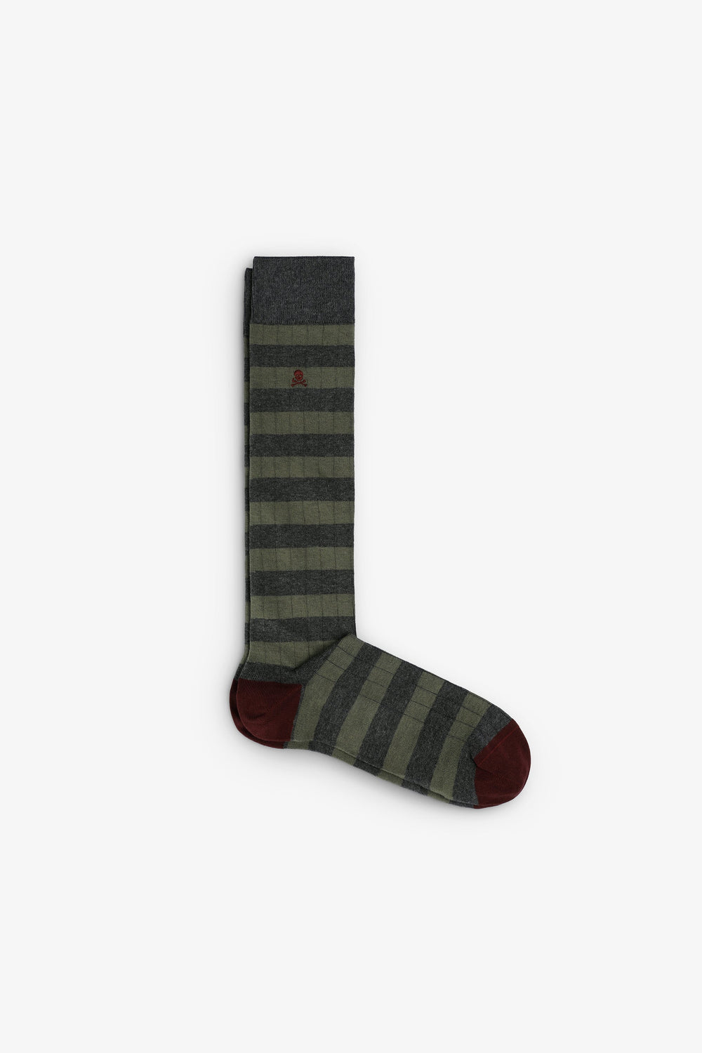 Socks made of an organic cotton blend. Stripe print. Contrast embroidered skull detail. Height: 36cm / Foot length: 23 cm.