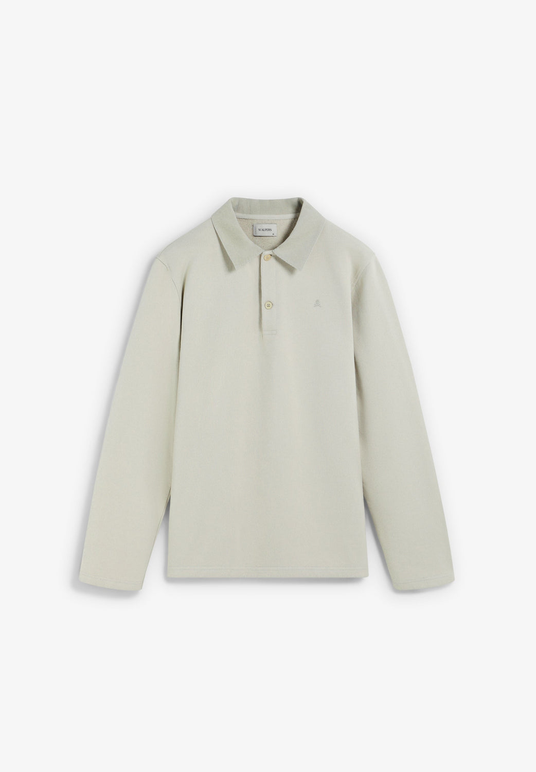 Long sleeved knit polo shirt. Made of slightly stretchy 100% BCI cotton fabric. Polo shirt collar with buttons. Button fastening on sleeve.