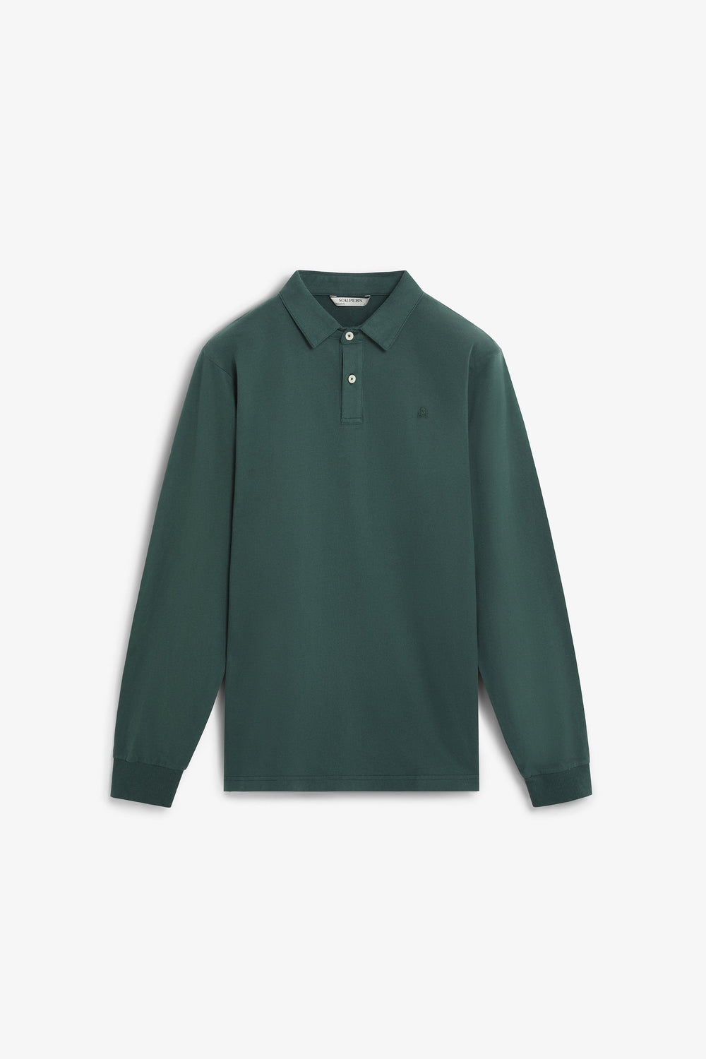 Long sleeve polo shirt made of 100% cotton. Matching embroidered skull detail on the chest. Shirt collar. Front button fastening.