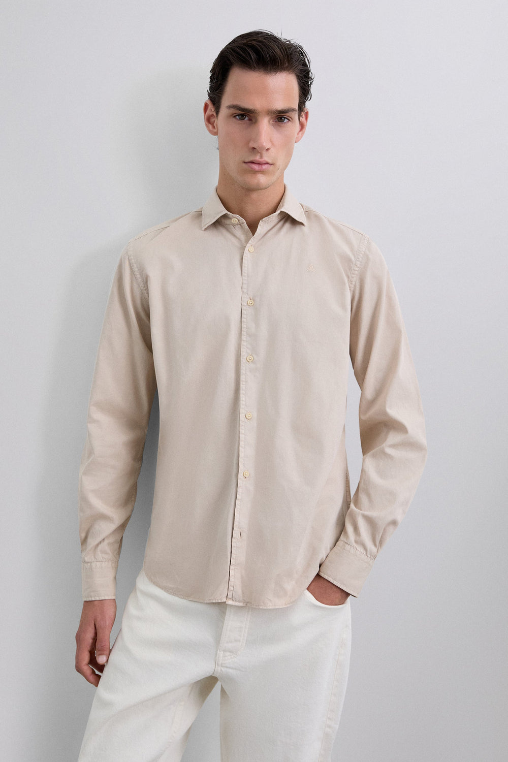 Shirt made of 100% organic cotton. Regular fit. Classic spread collar. Front button fastening. Long sleeves with buttoned cuffs. Patch pocket on the chest. Sleeve placket. Matching embroidered skull detail.
