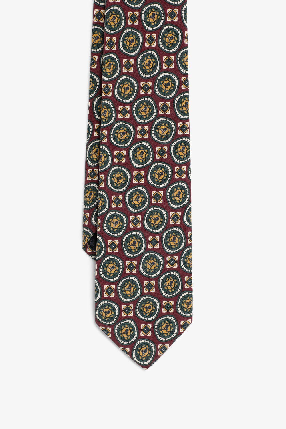 100% silk tie with geometric logo print and lined, 7.5 cm wide.