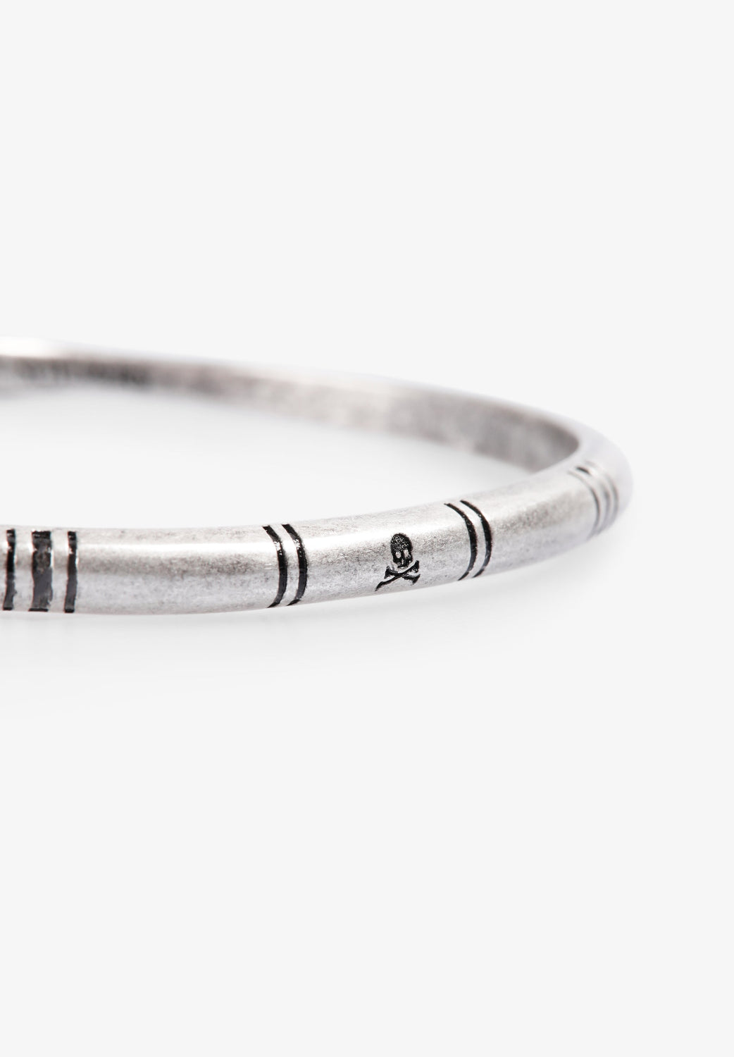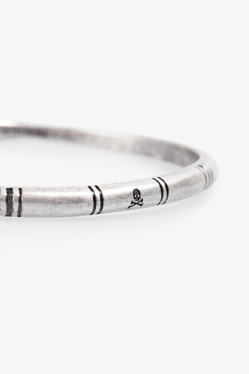 Bracelet made of brass with a silver tone finish. Front details with logo.
