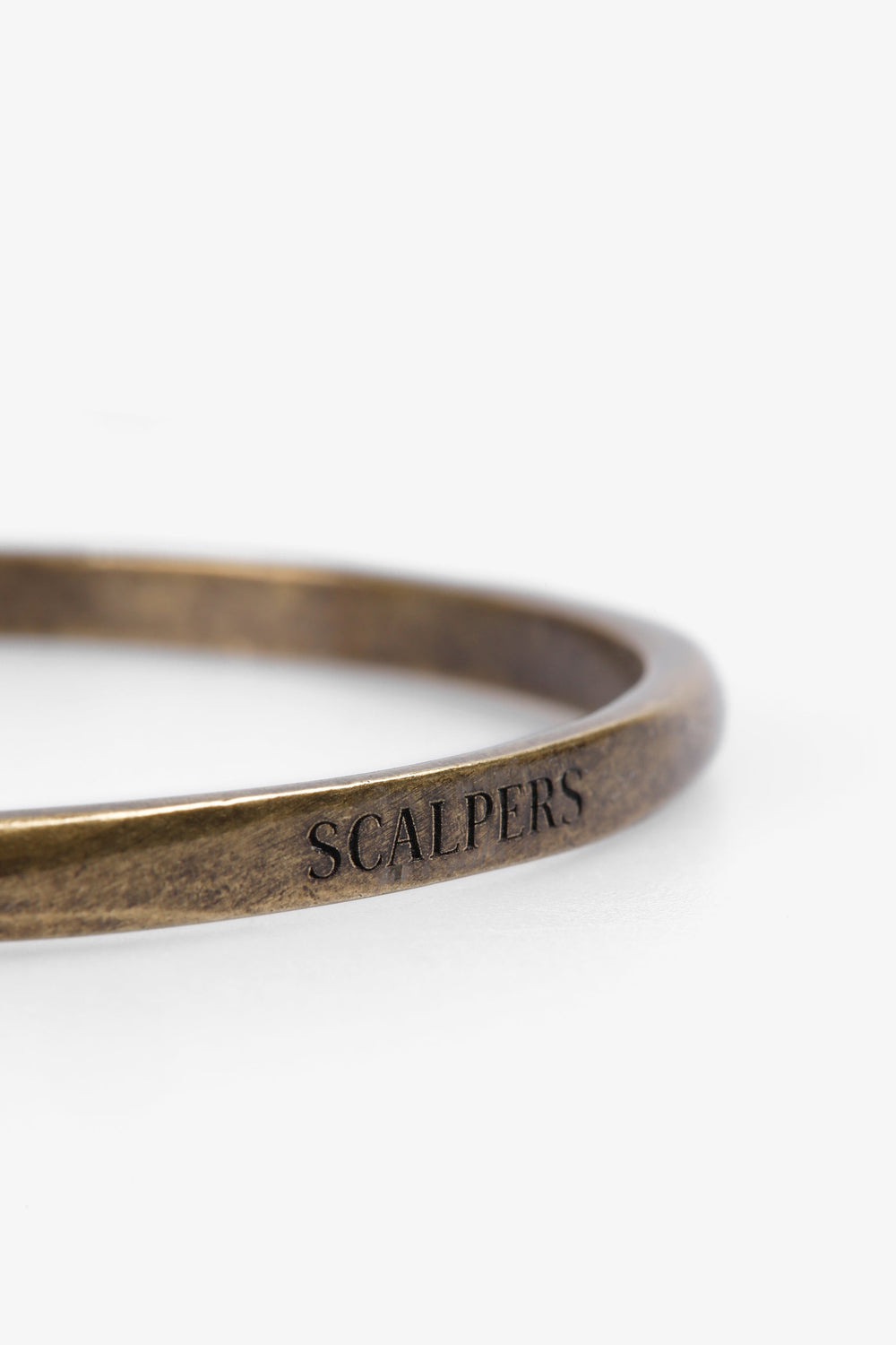 Bracelet made of brass with old gold finish. Logo engraved on front.