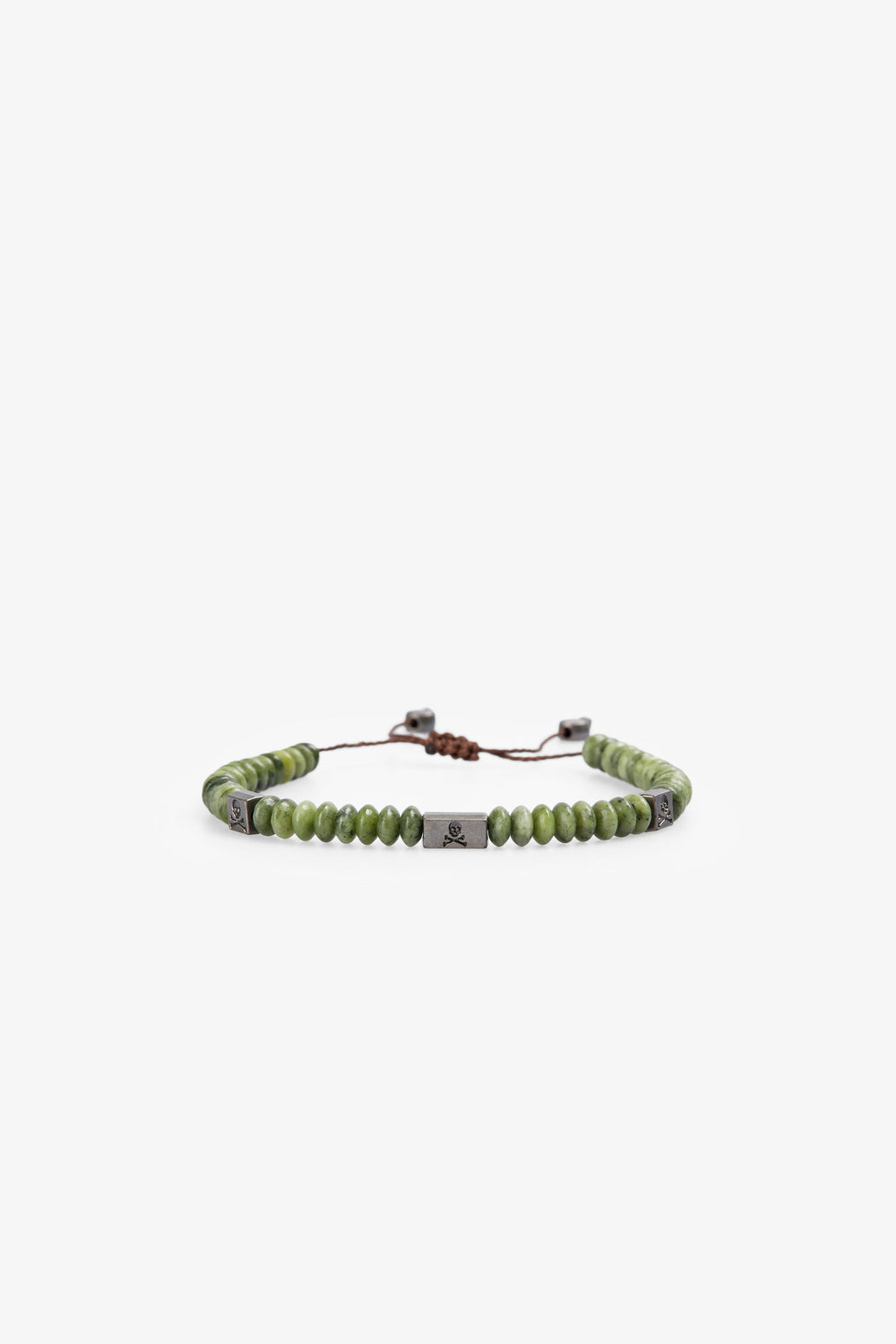 Bracelet made of natural stone. Metal appliqués with logo. Adjustable wrist fastening.