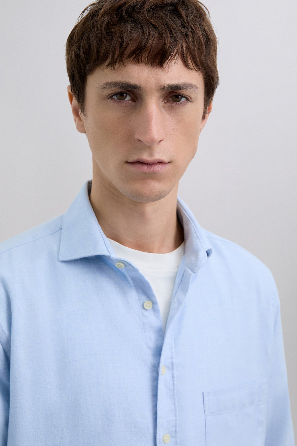 Shirt made of 100% cotton. Slim fit. Long sleeves. Button fastening at front and cuffs. Patch pocket detail on the chest.