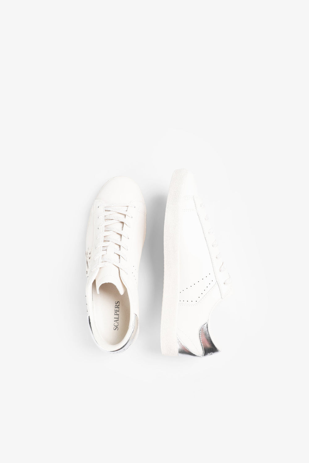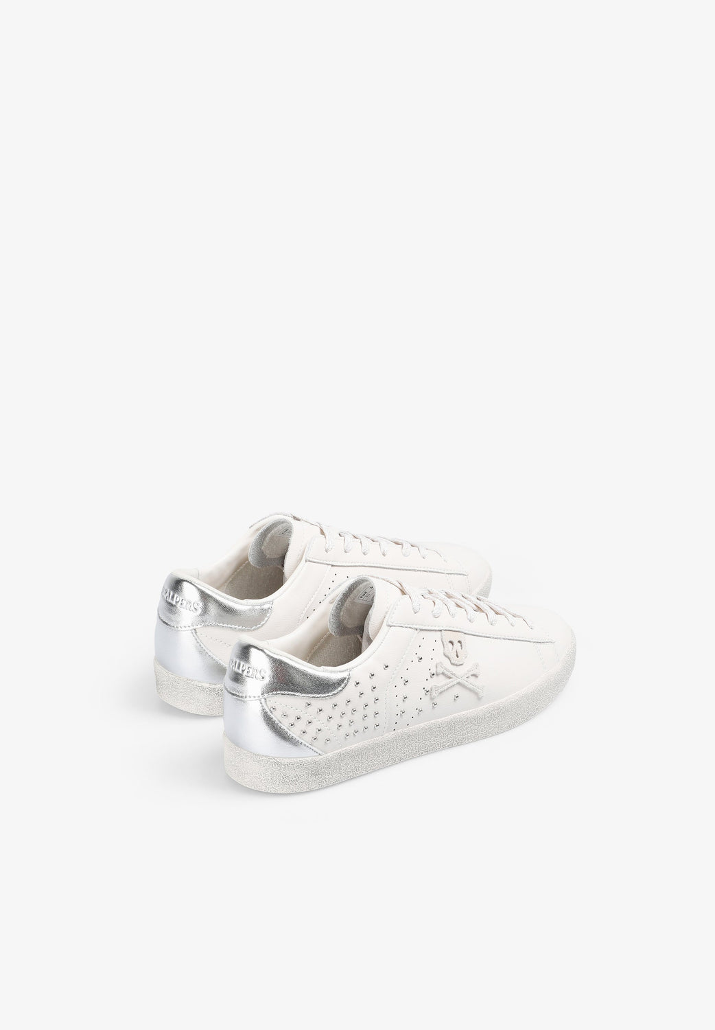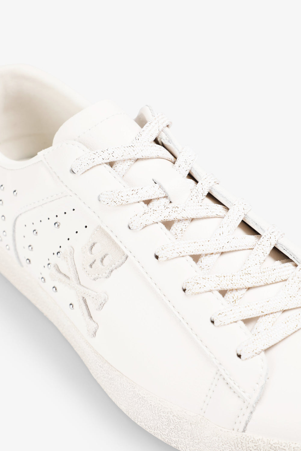 Sneakers made of 100% leather. Contrast embroidered skull on side. Studs detail on the side. Contrast silver heel with matching embroidered logo. Rubber sole Matching lace-up fastening.