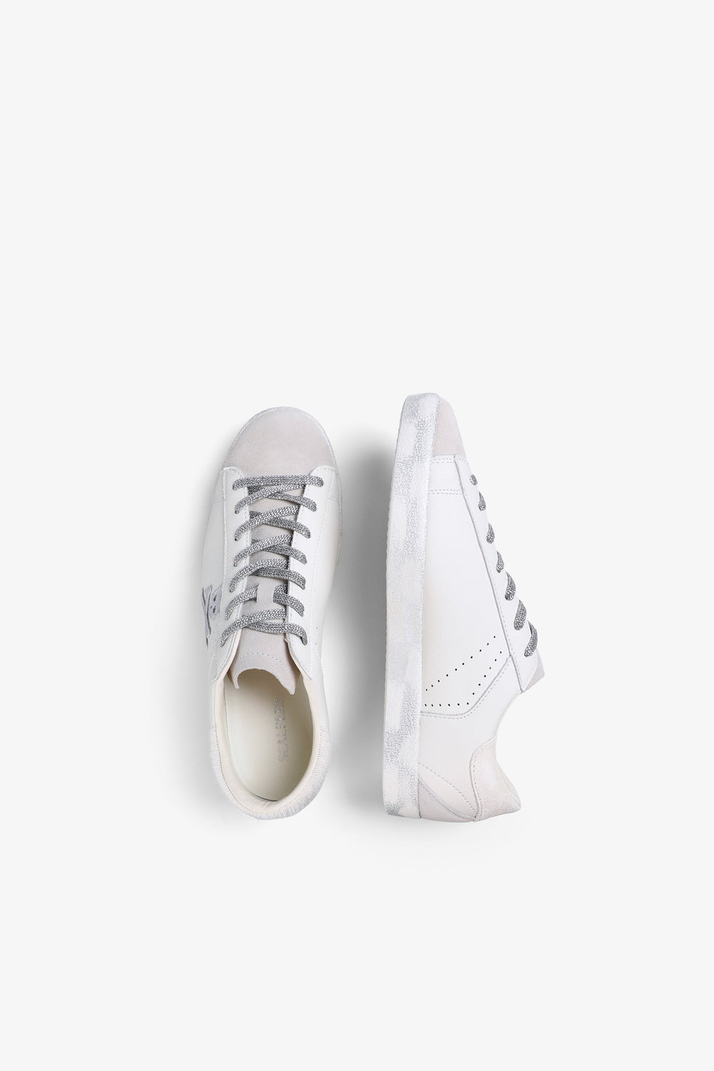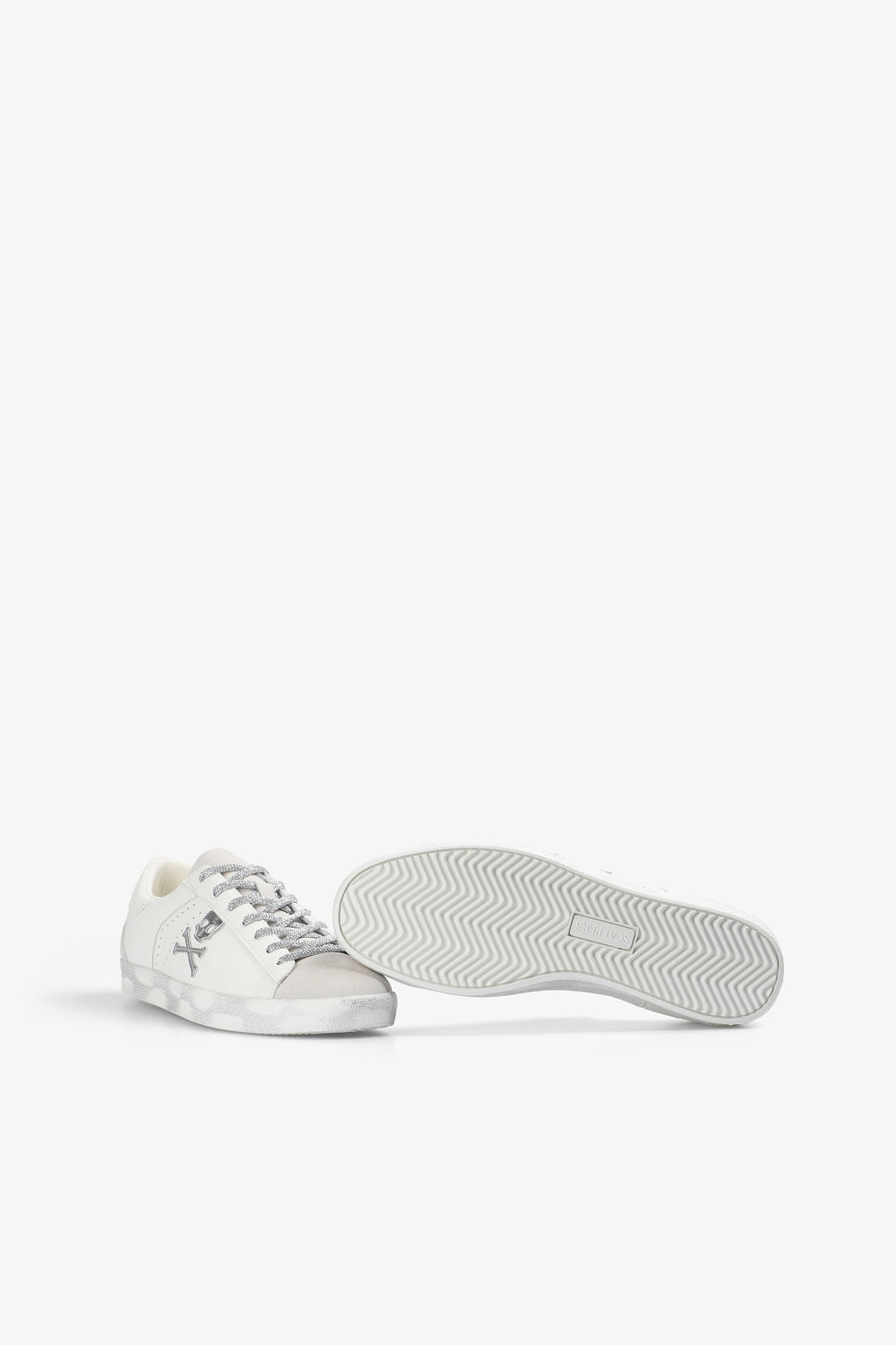 Sneakers made of 100% leather. Contrast embroidered silver side skull. Contrast details. Worn effect rubber sole. Contrast lace-up fastening
