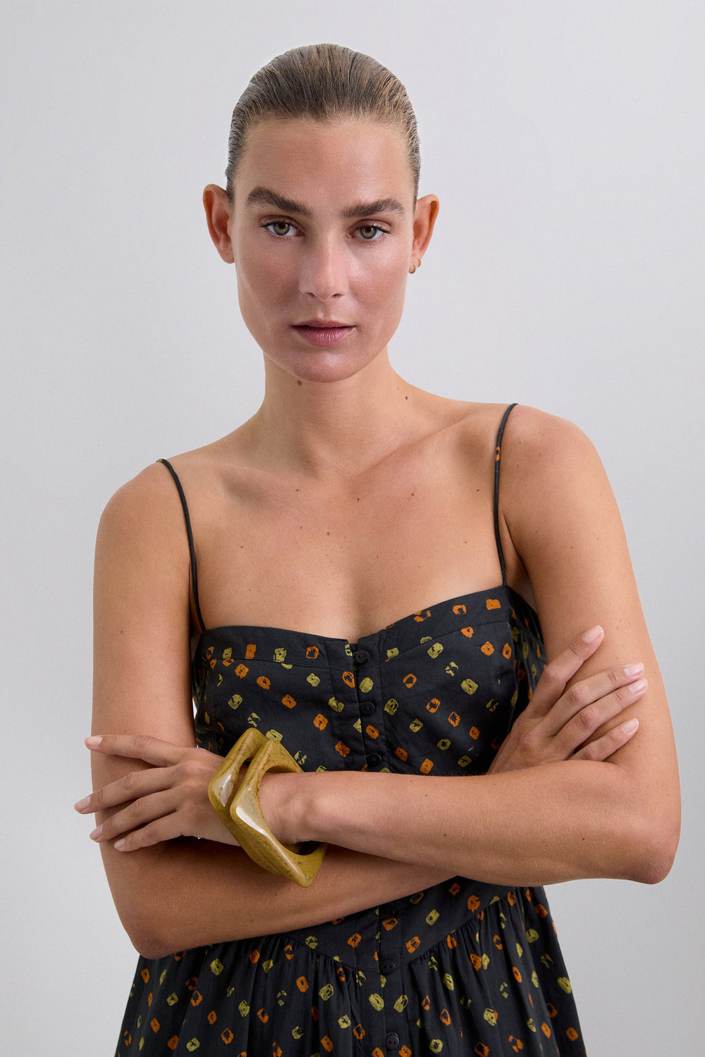 Printed dress made of 100% BCI Cotton fabric with print. Regular fit and thin straps.