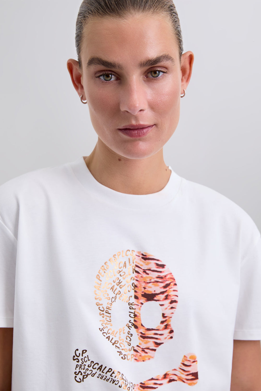 T-shirt made of 100% BCI cotton with skull print, half letters and animal print. Regular fit, round neck and short sleeves.