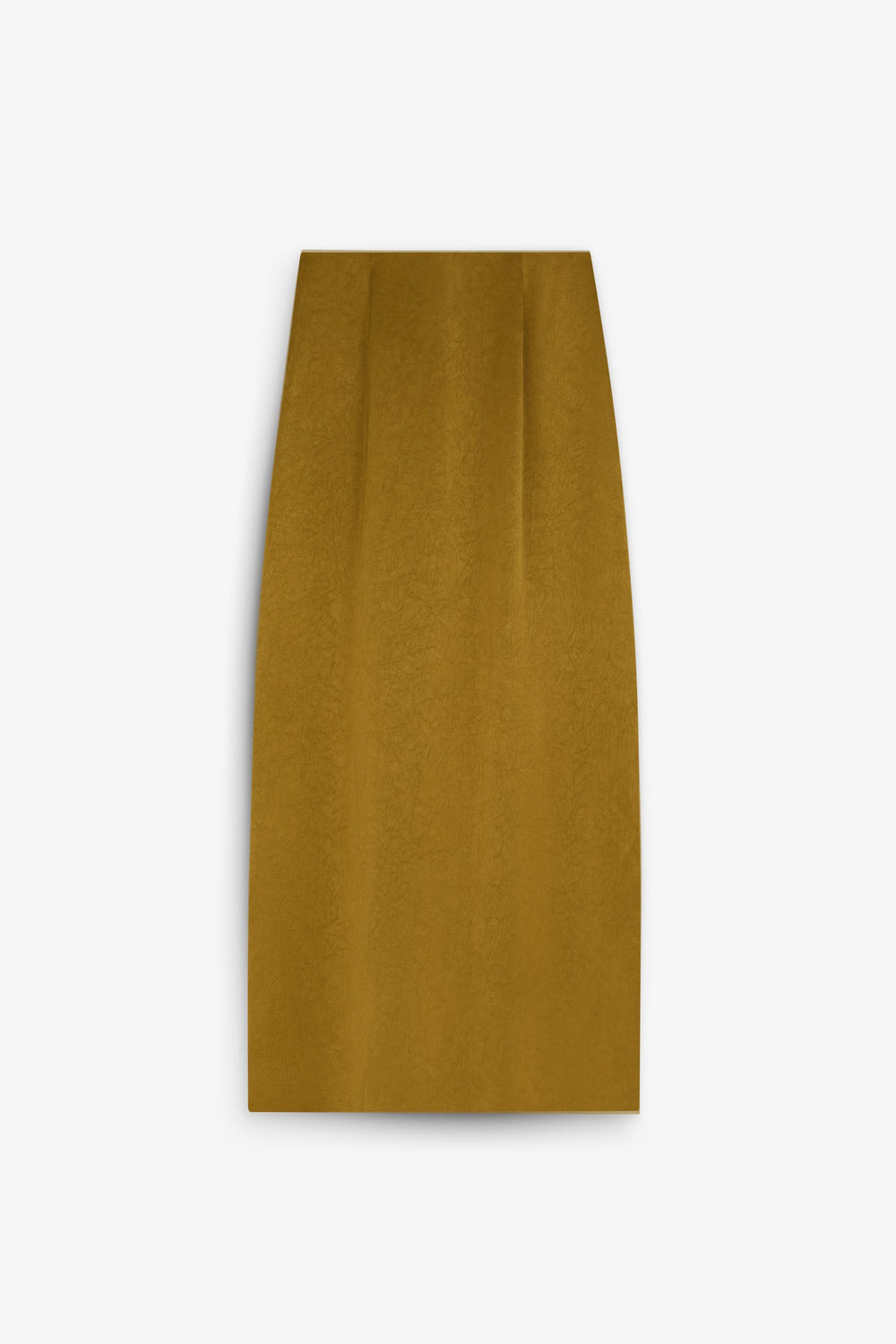 Midi skirt made of flowing fabric with texture. Concealed side zip fastening and split leg.