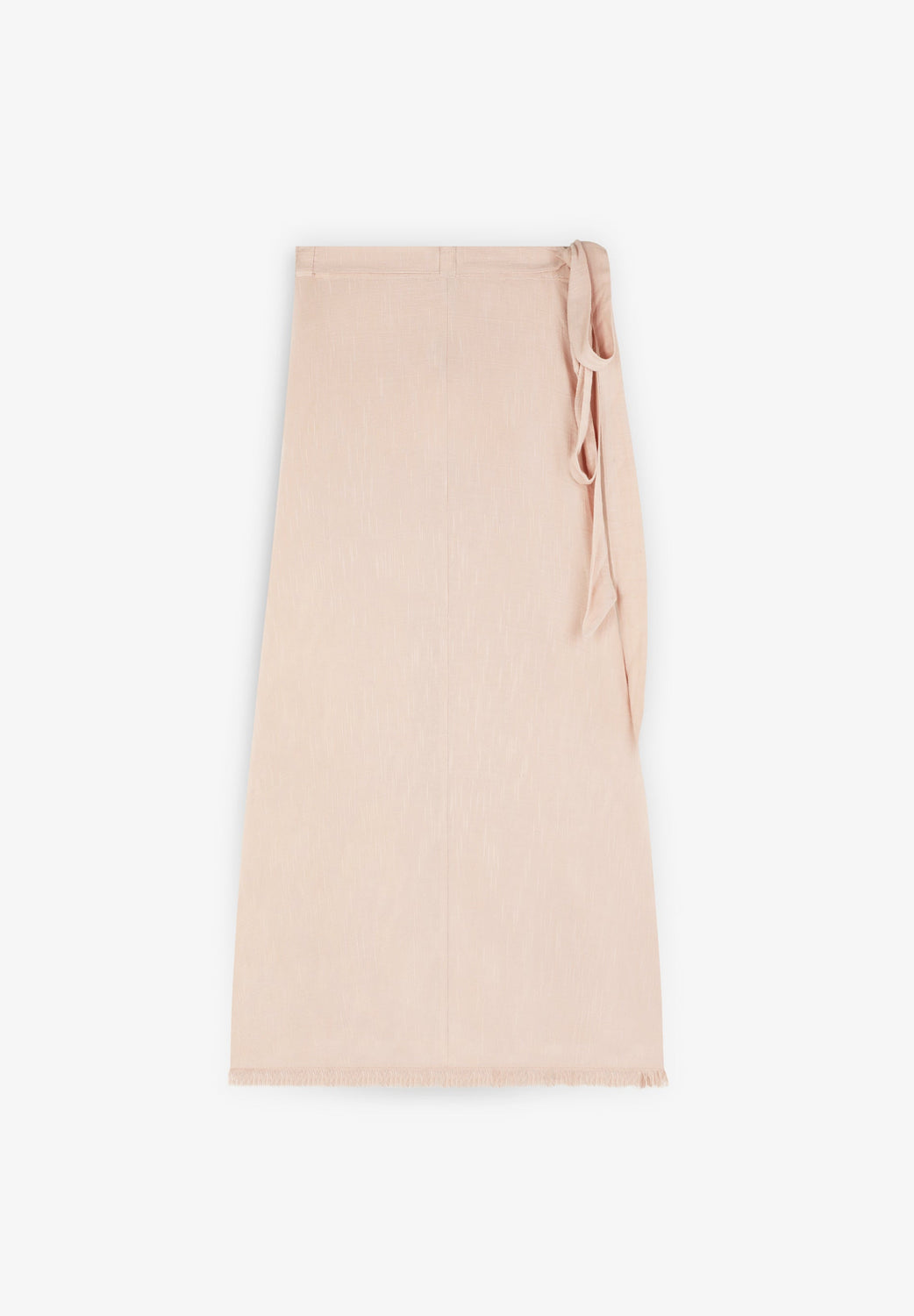 Cotton midi skirt with fringed hem detail. Adjustable side tie detail.