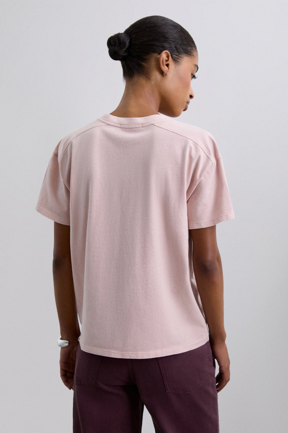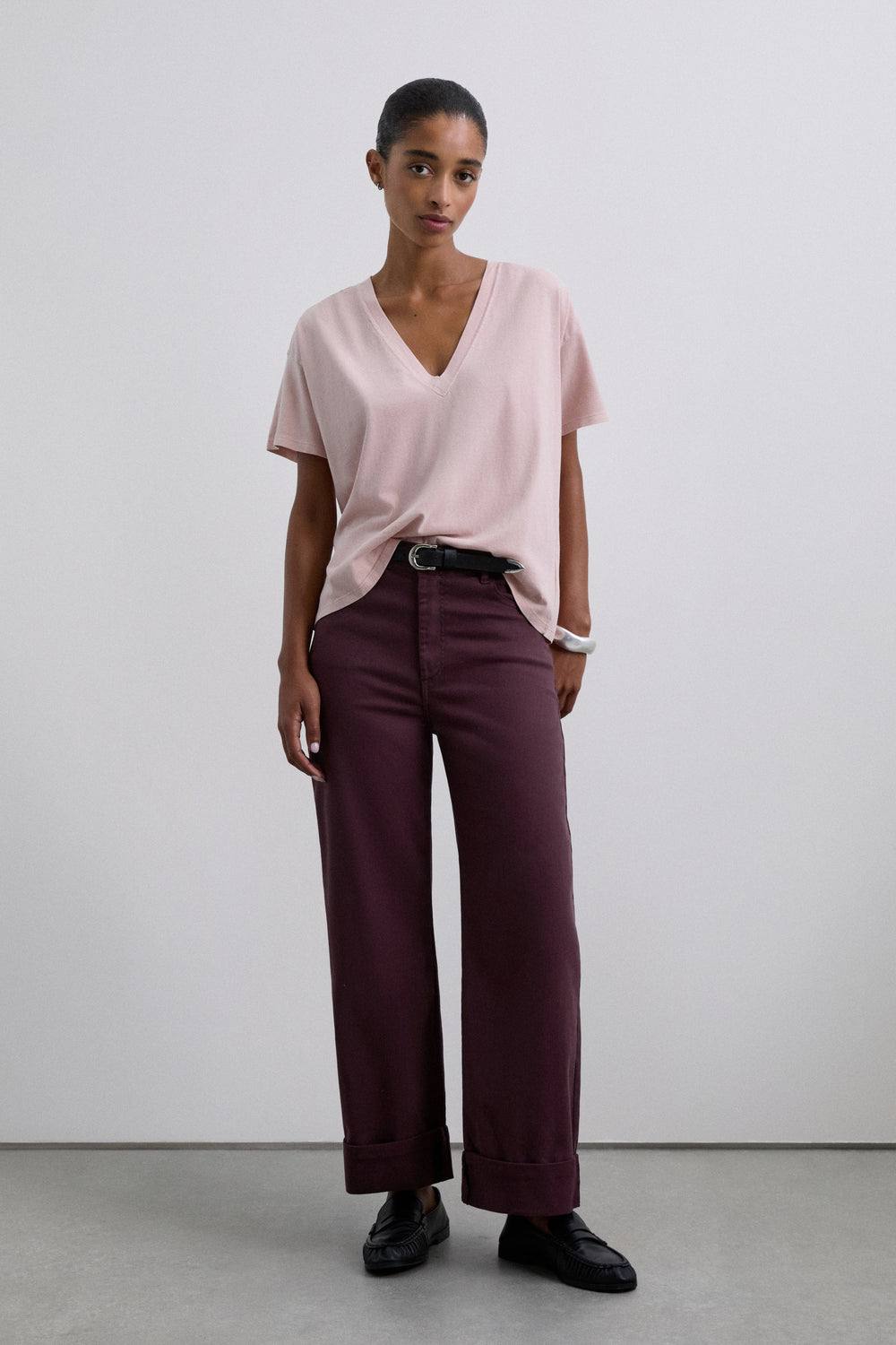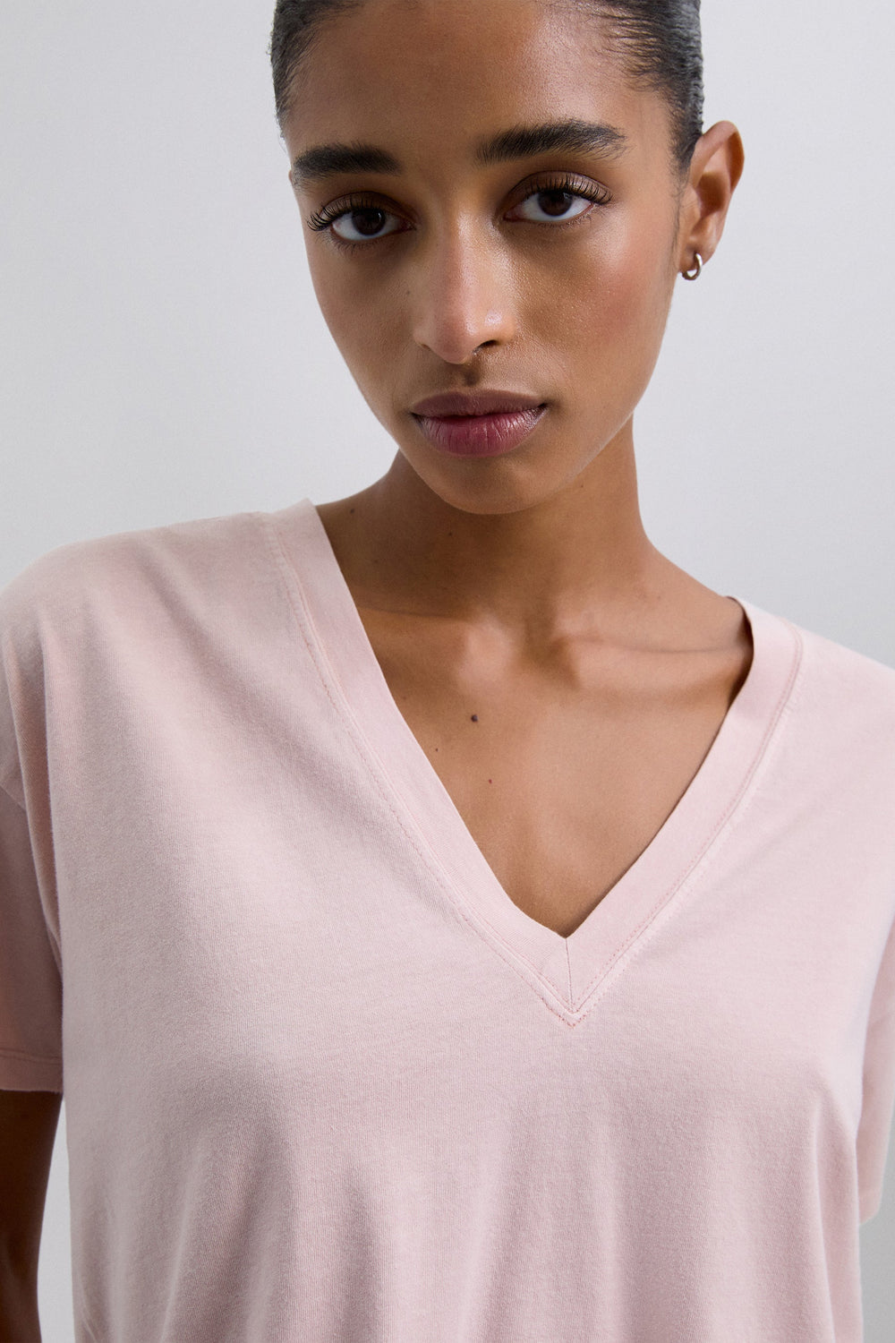 Basic T-shirt made of 100% organic cotton. Regular fit, V-neck and short sleeves. Embroidered logo detail at the lower front.