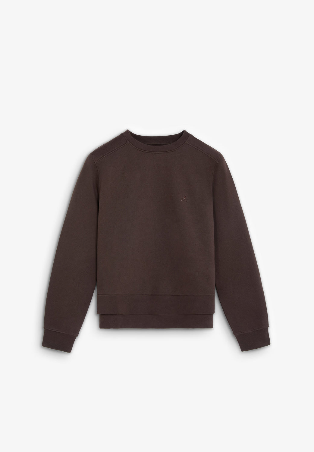 Sweatshirt made of 100% organic cotton. Regular fit, round neck and long sleeves with ribbed cuffs. Asymmetric hem, longer back. Embroidered skull detail on the chest.