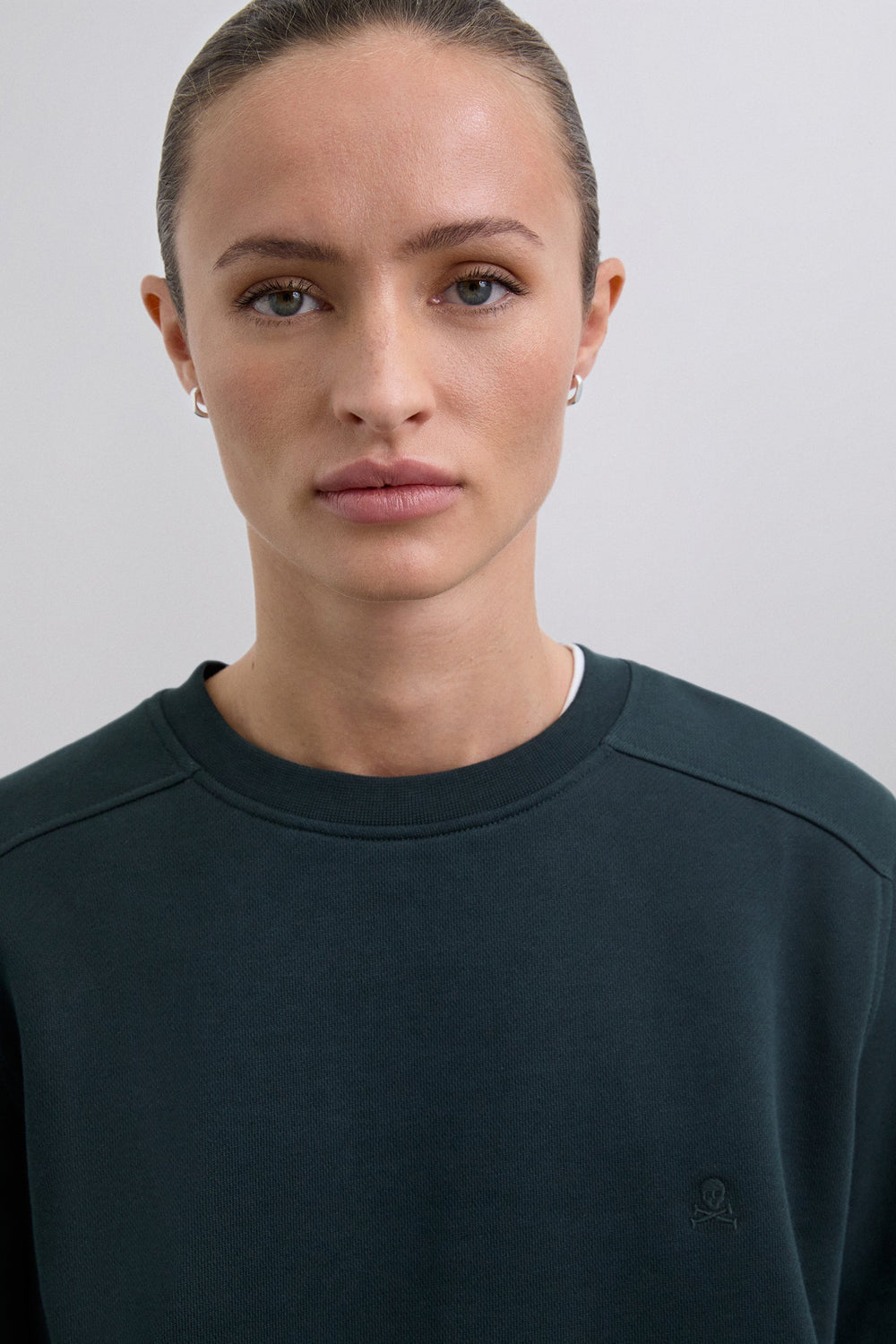 Sweatshirt made of 100% organic cotton. Regular fit, round neck and long sleeves with ribbed cuffs. Asymmetric hem, longer back. Embroidered skull detail on the chest.