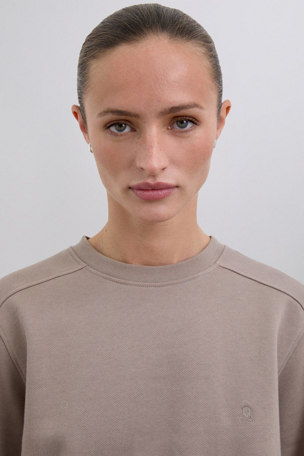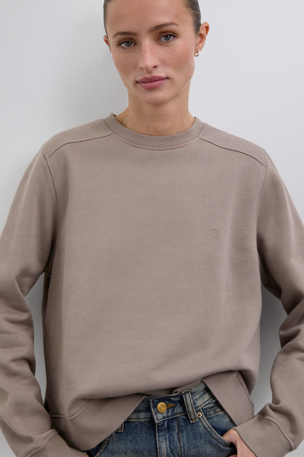 Sweatshirt made of 100% organic cotton. Regular fit, round neck and long sleeves with ribbed cuffs. Asymmetric hem, longer back. Embroidered skull detail on the chest.