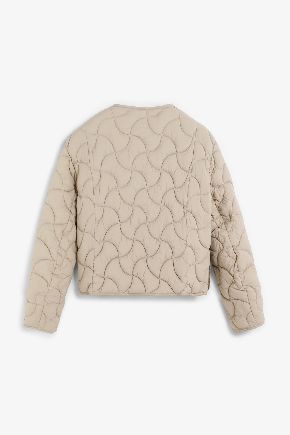 Regular fit puffer jacket. Round neck. Long sleeves. Snap-button fastening and zip at front. Rounded hem. Piped detailing around sleeves, pockets and hem.