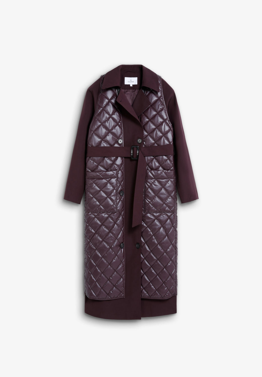 Waterproof trench coat. Slightly oversize. Collar with button fastening and front fastening with buttons and belt. Long sleeves. Detachable puffer vest.