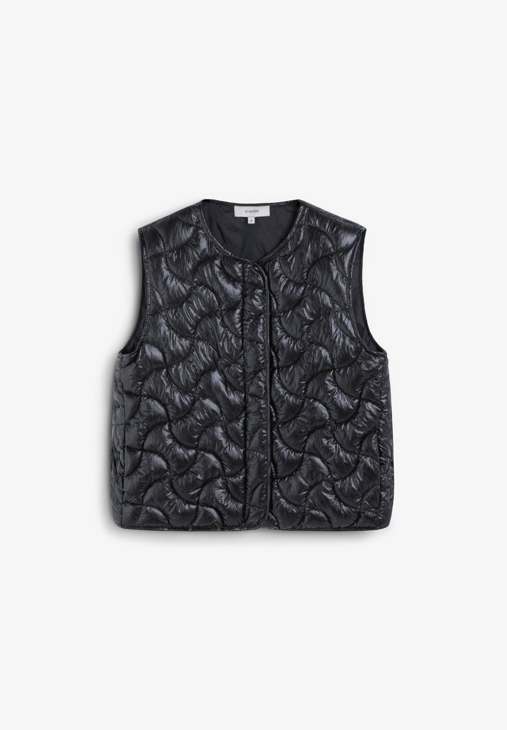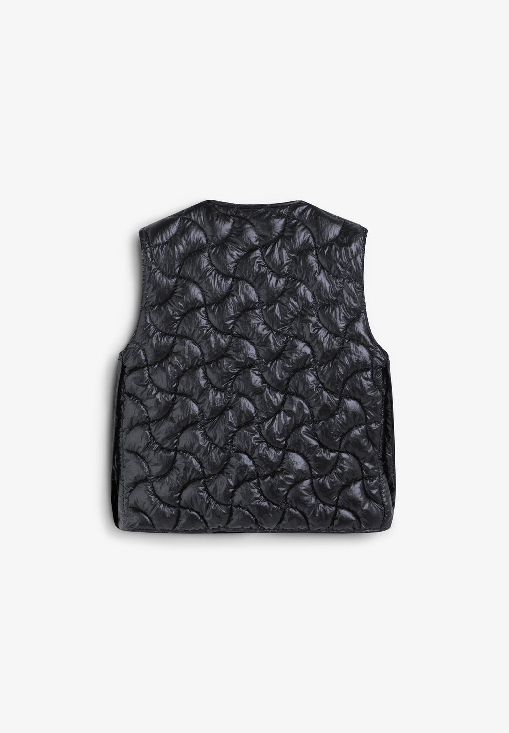 Quilted gilet made of technical fabric. Patterned stitching. Front press-stud fastening.