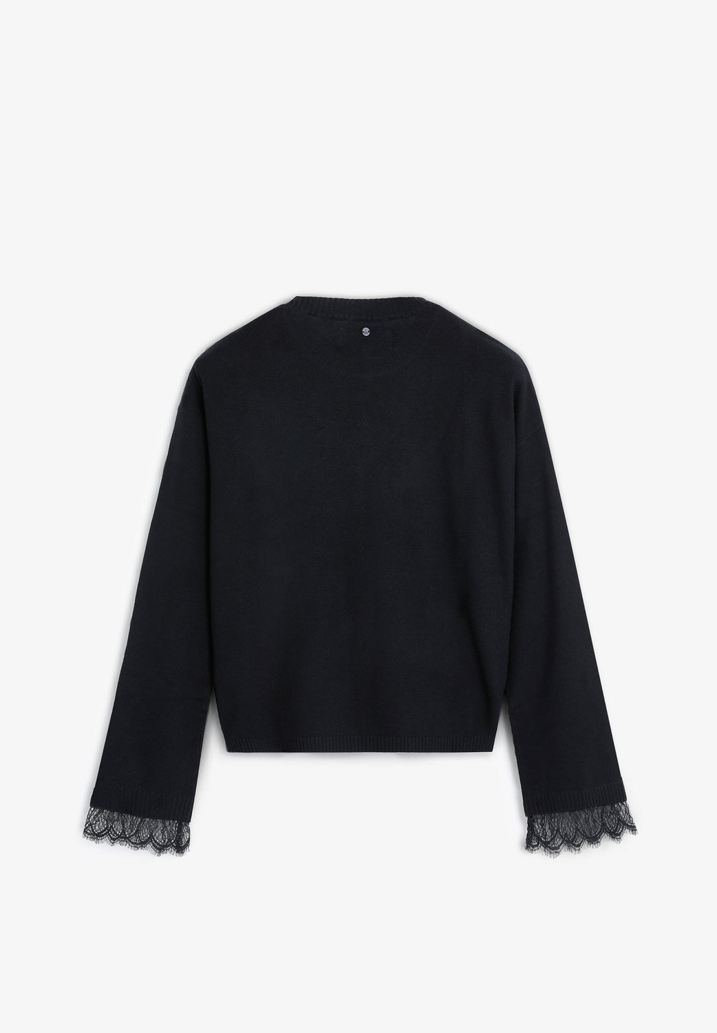 Sweater made of a wool and viscose blend. Regular fit. Round neck and long sleeves with ribbed trim. Lace details on chest and cuffs.
