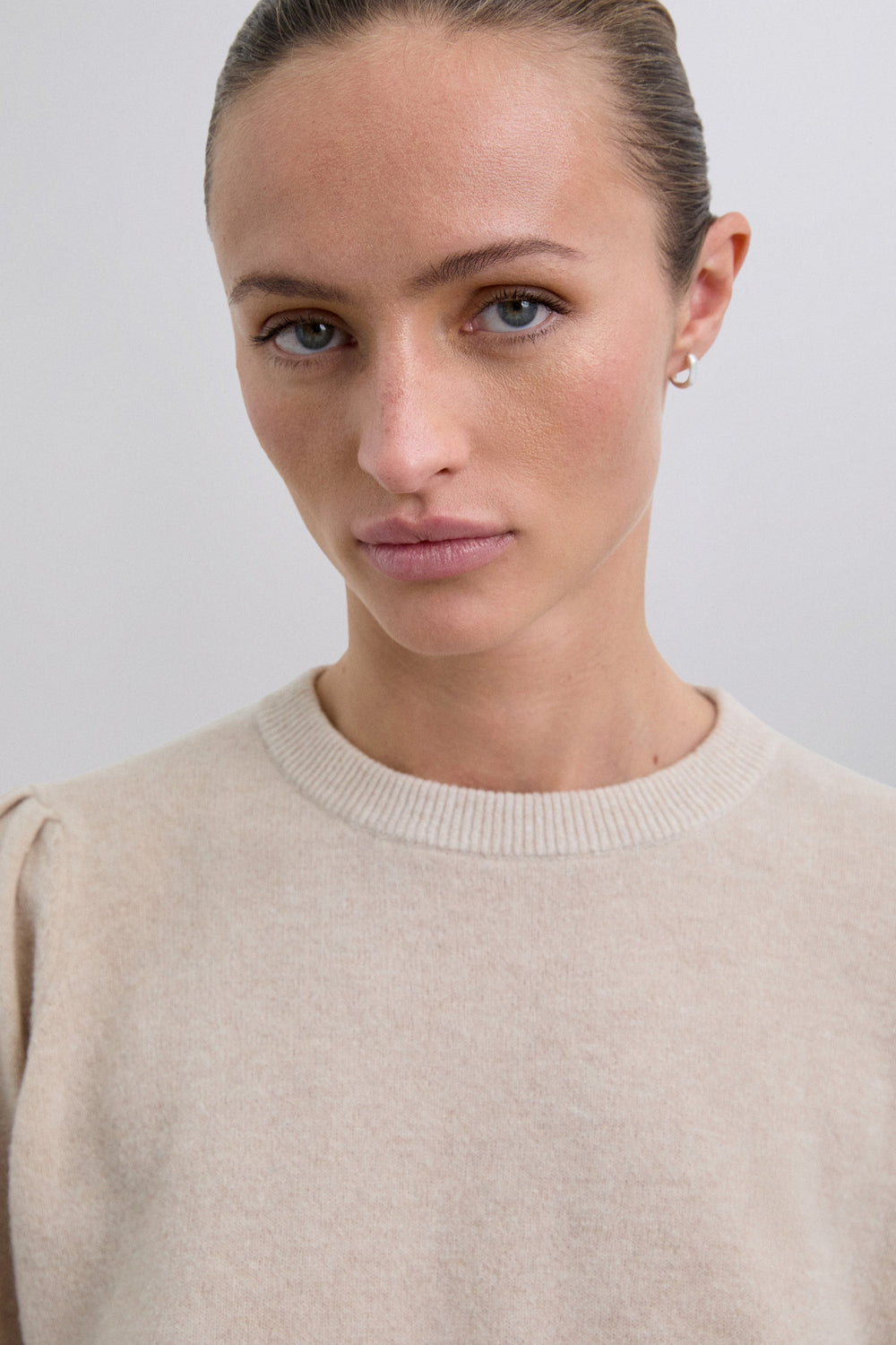 Sweater made of a wool blend. Regular fit. Round neck. Long slightly puffed sleeves with ribbed cuffs.