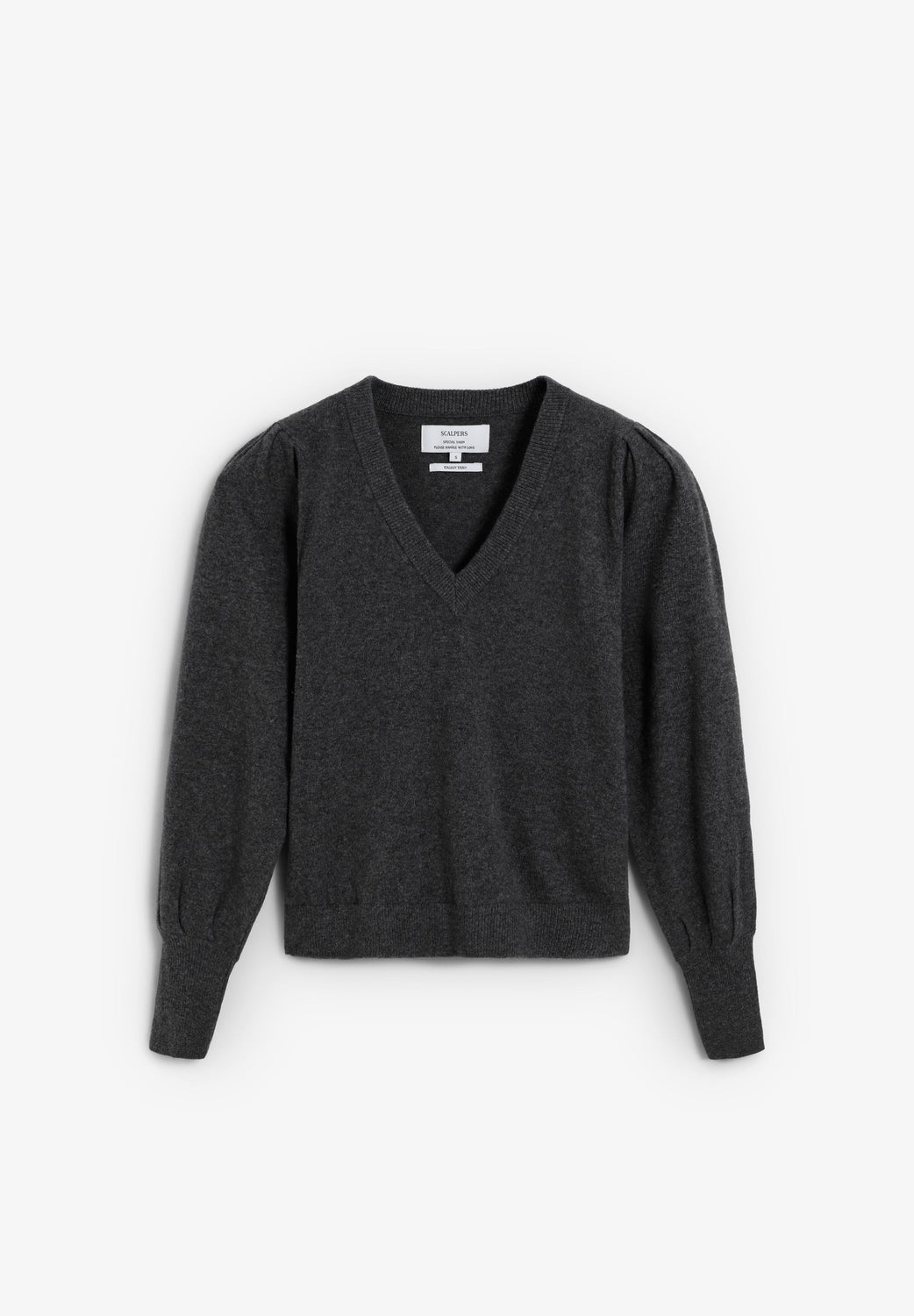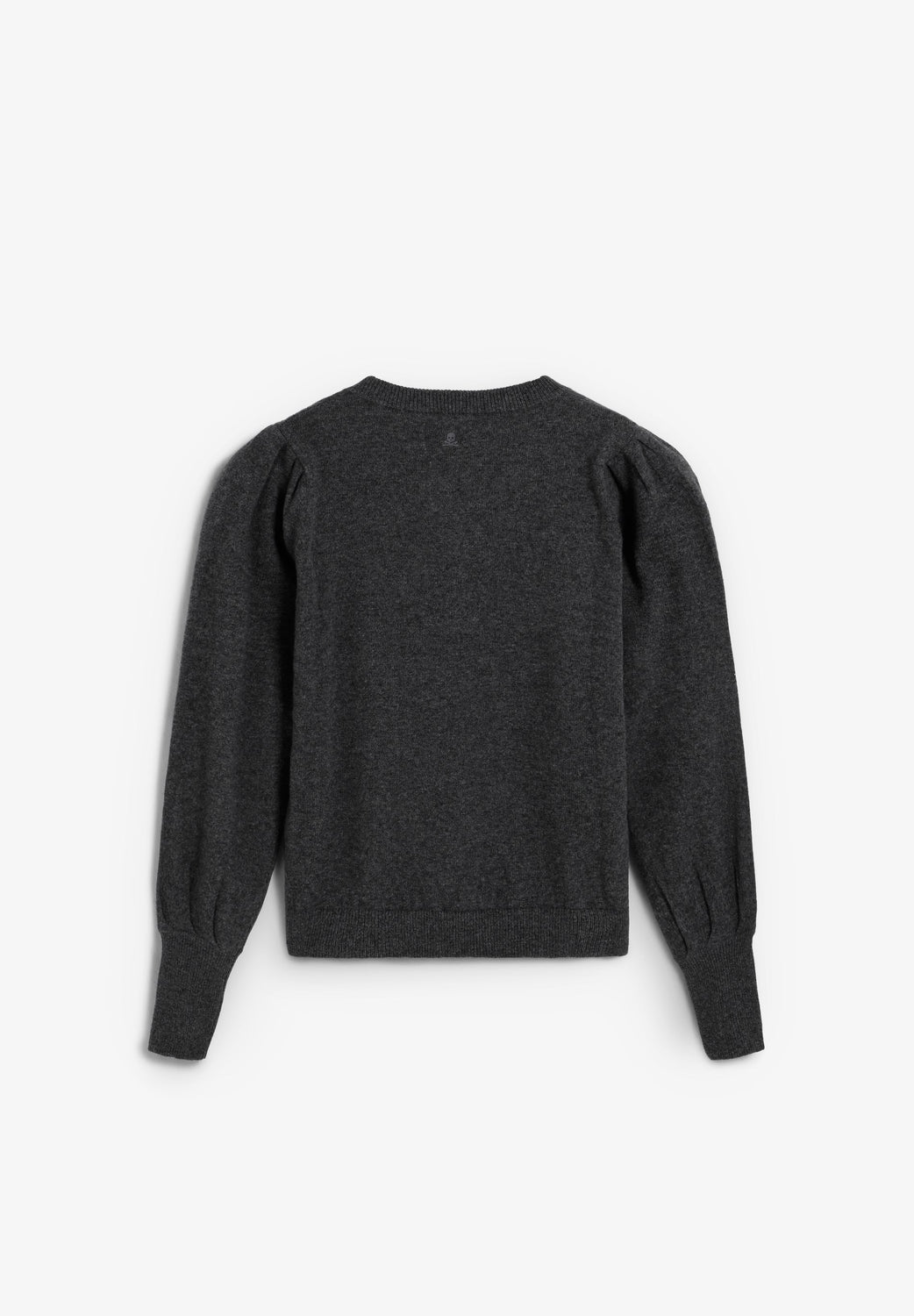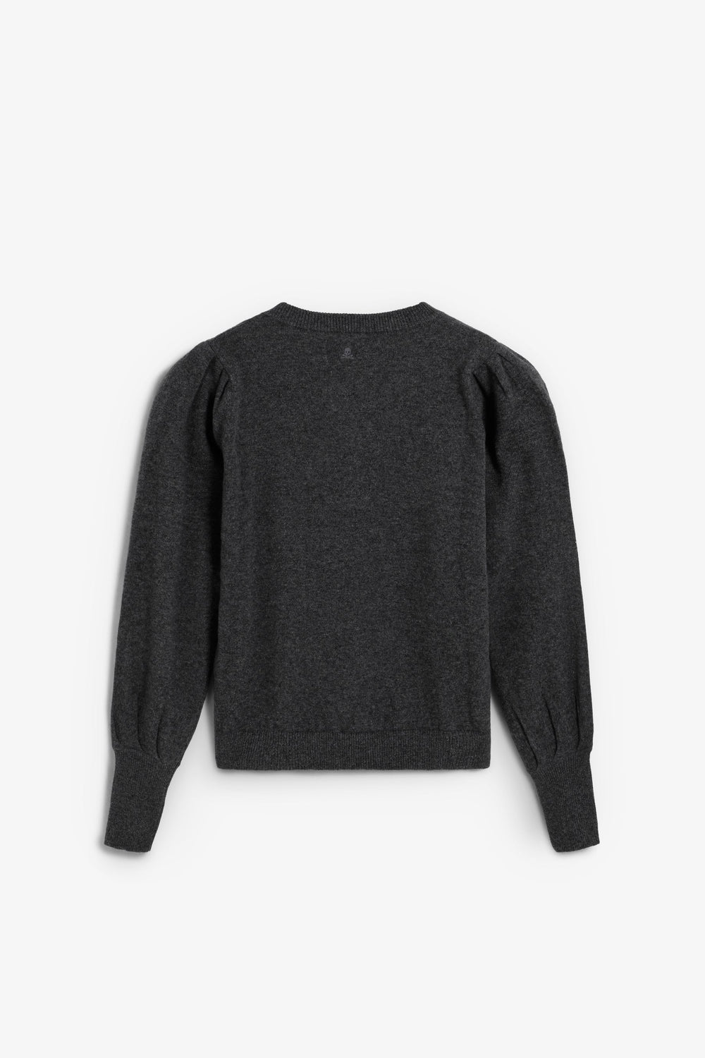 Sweater made of a wool blend with V-neck. Regular fit. Long, slightly puffed sleeves with ribbed cuffs. Matching embroidered skull detail on the back.