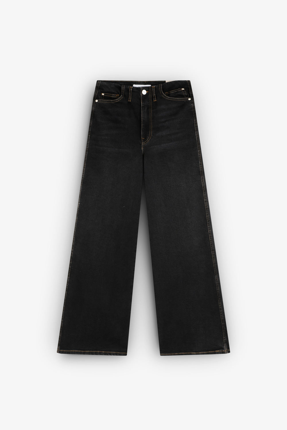 Jeans made of a slightly stretch cotton fabric. Culottes with high waist and zip and button fastening. Front and back pockets.