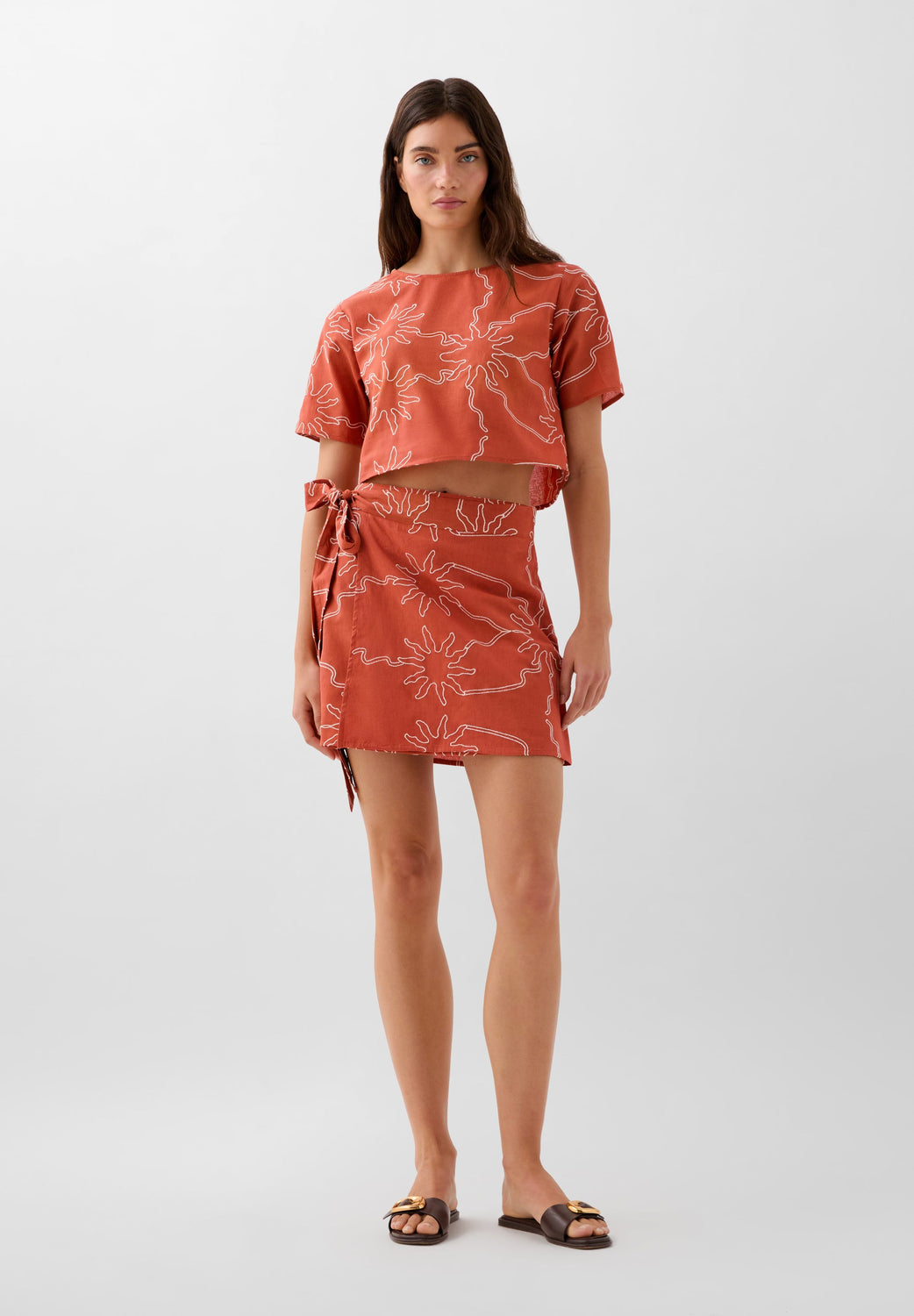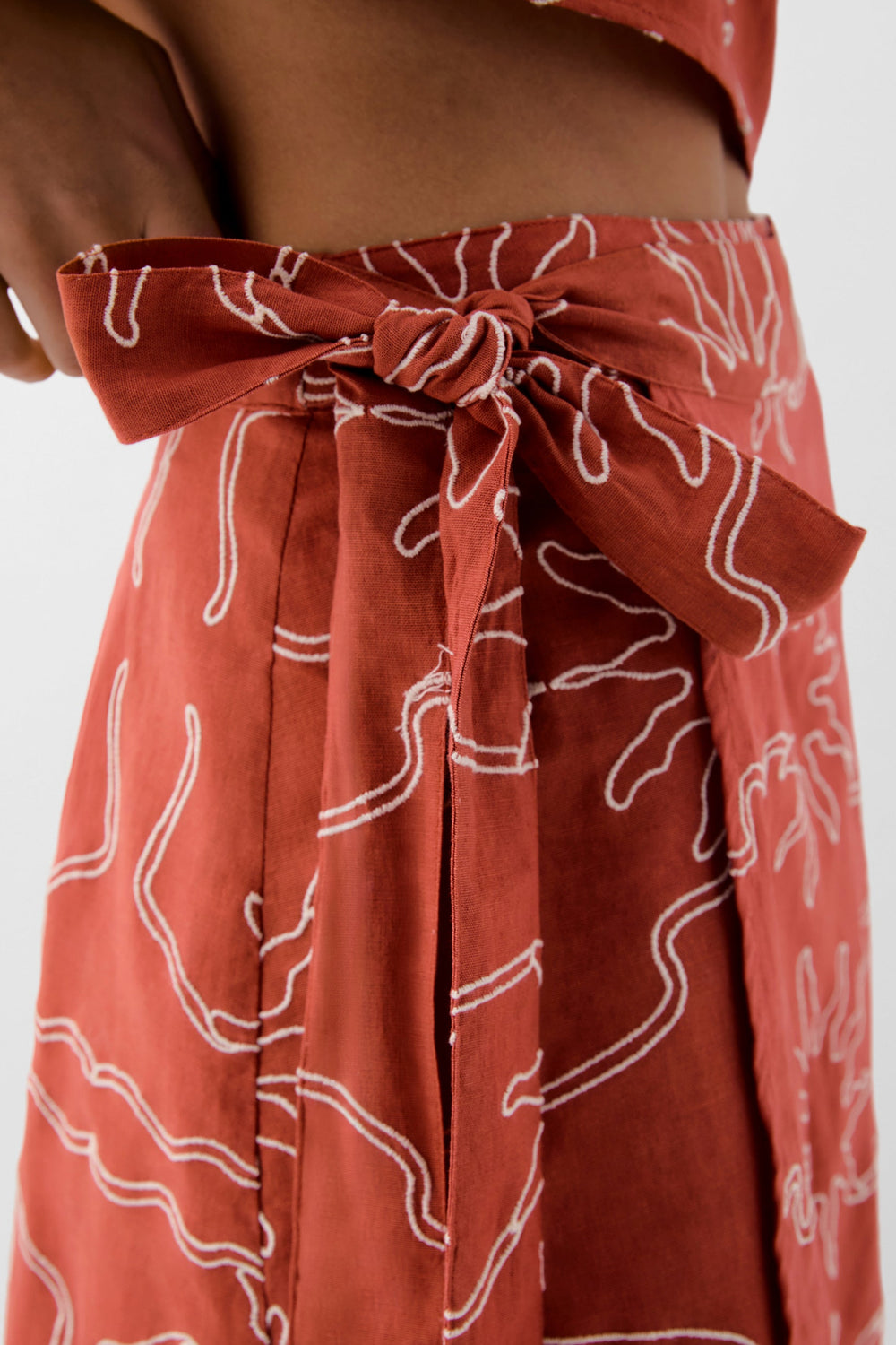 This skirt is designed in collaboration with Scalpers and belongs to the ROBIN x SCALPERS collection. Skirt made of a linen and organic cotton blend. Contrast embroidered motifs. Adjustable with side knot.