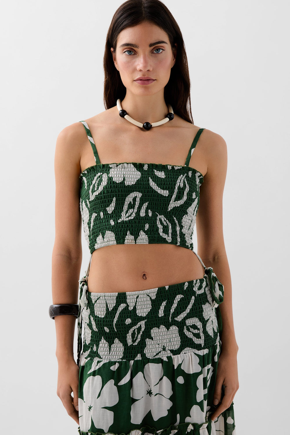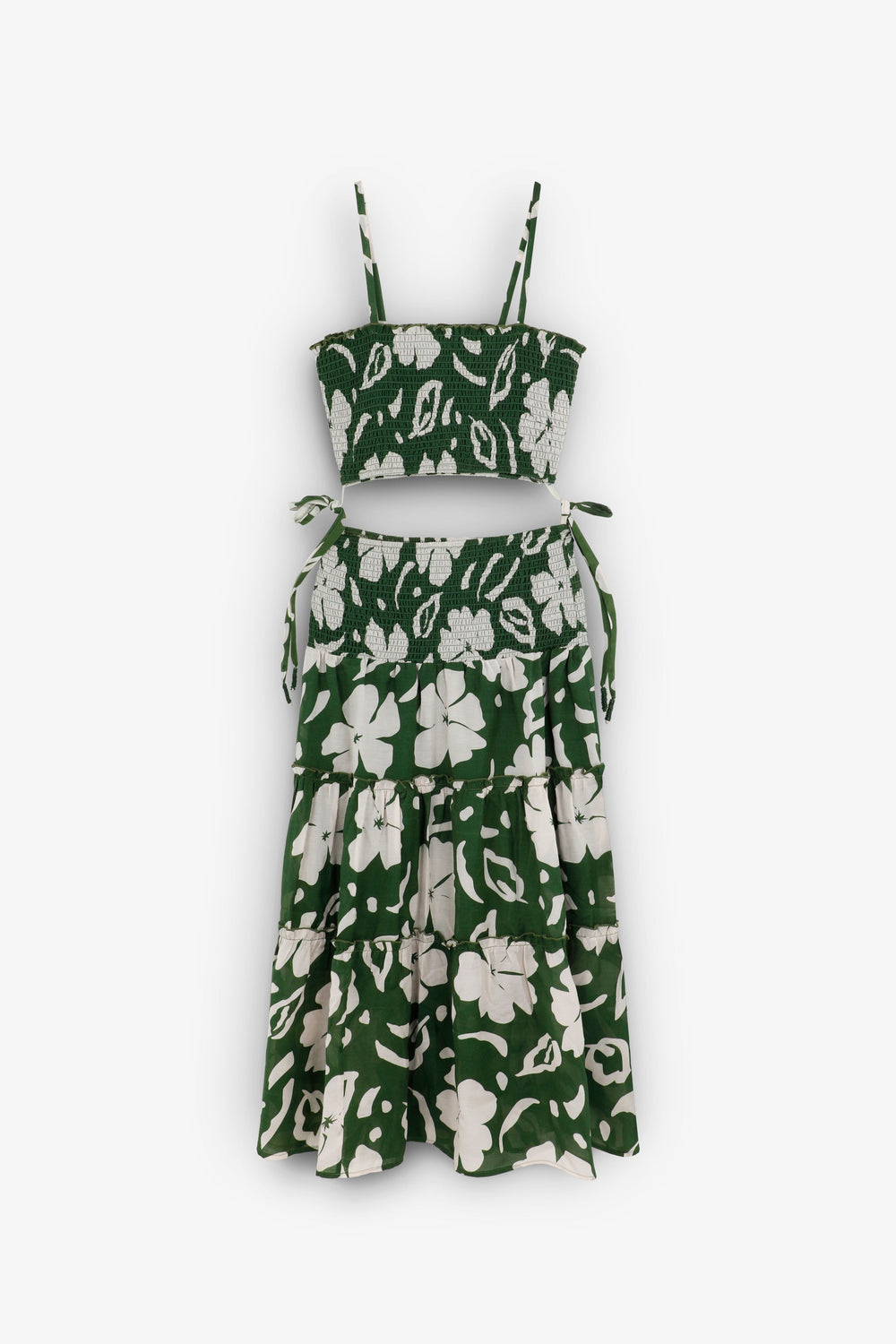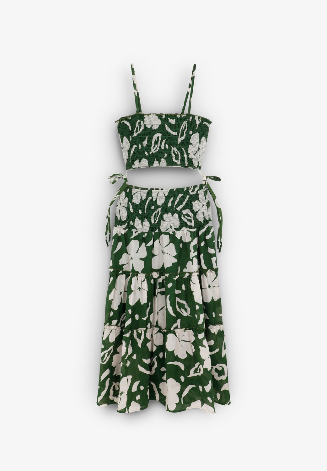 This dress is designed in collaboration with Scalpers and belongs to the ROBIN x SCALPERS collection. Dress made of organic BCI cotton. Lined. Floral print. Smocked detail. Seam detail. The two parts are joined by a lacing on the sides.