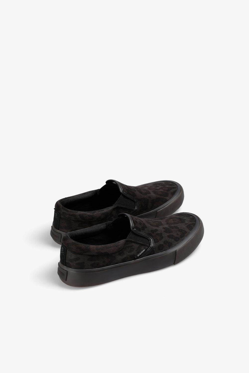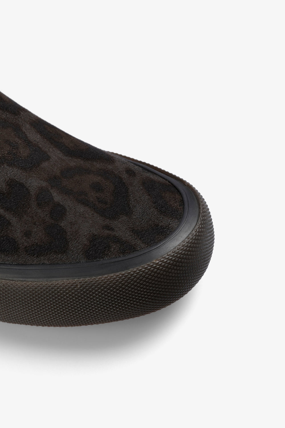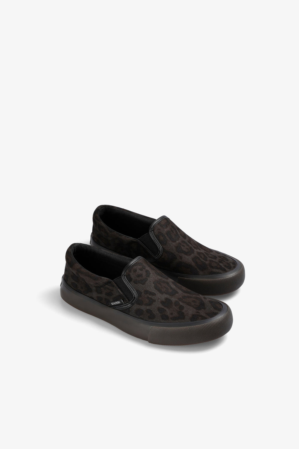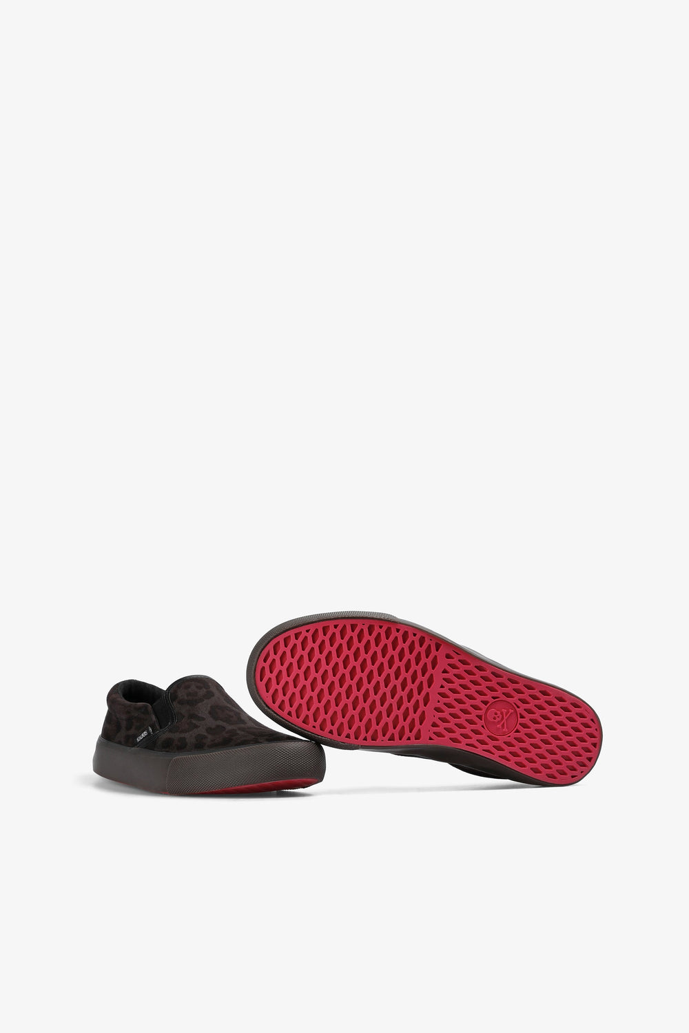 Leopard print slip-on sneakers. No laces. Contrast sole. Label detail on the side.