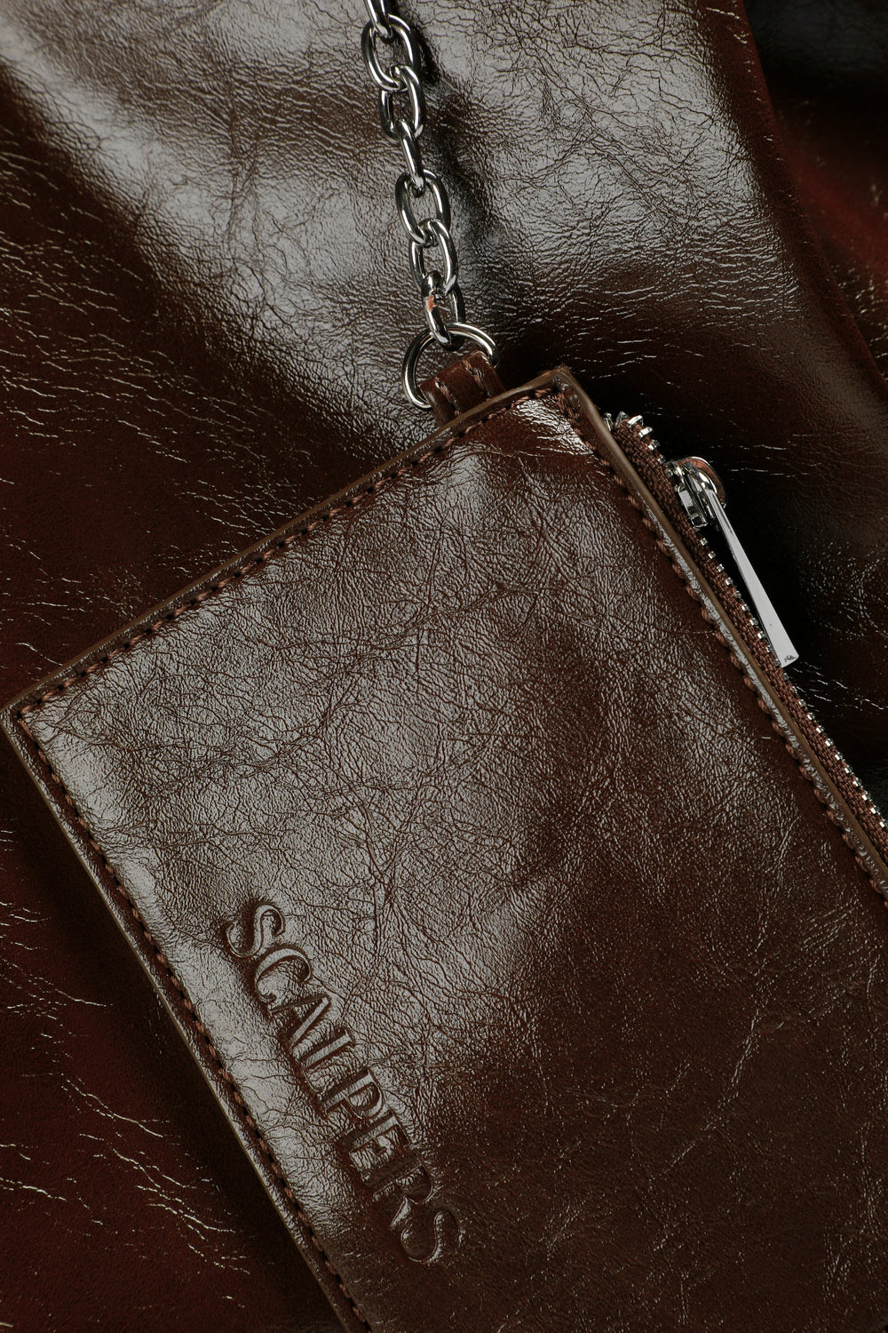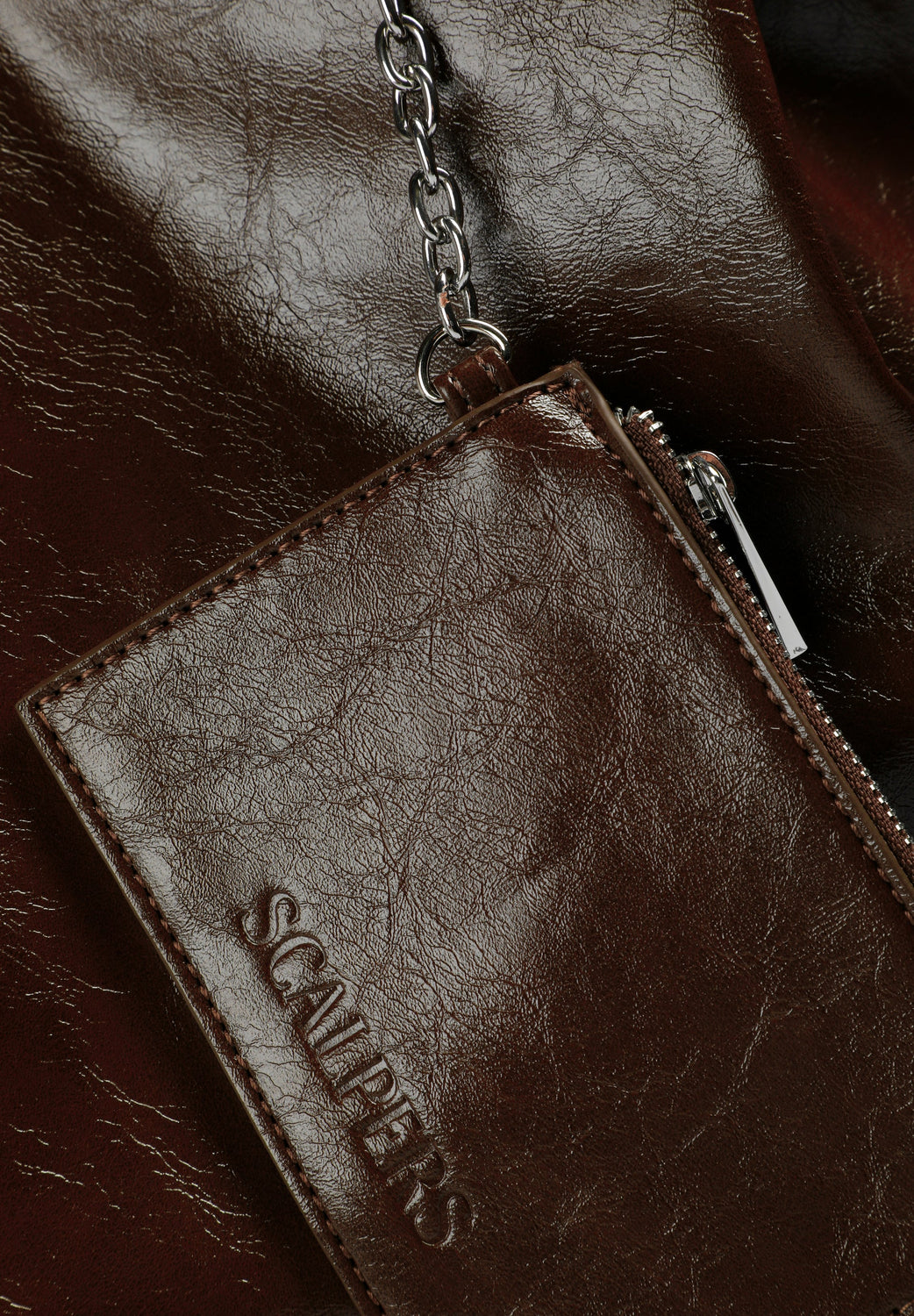 PU tote bag. Lined. Double zipped pocket. Adjustable side straps. Matching wallet inside