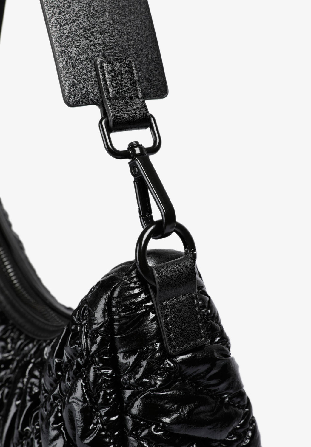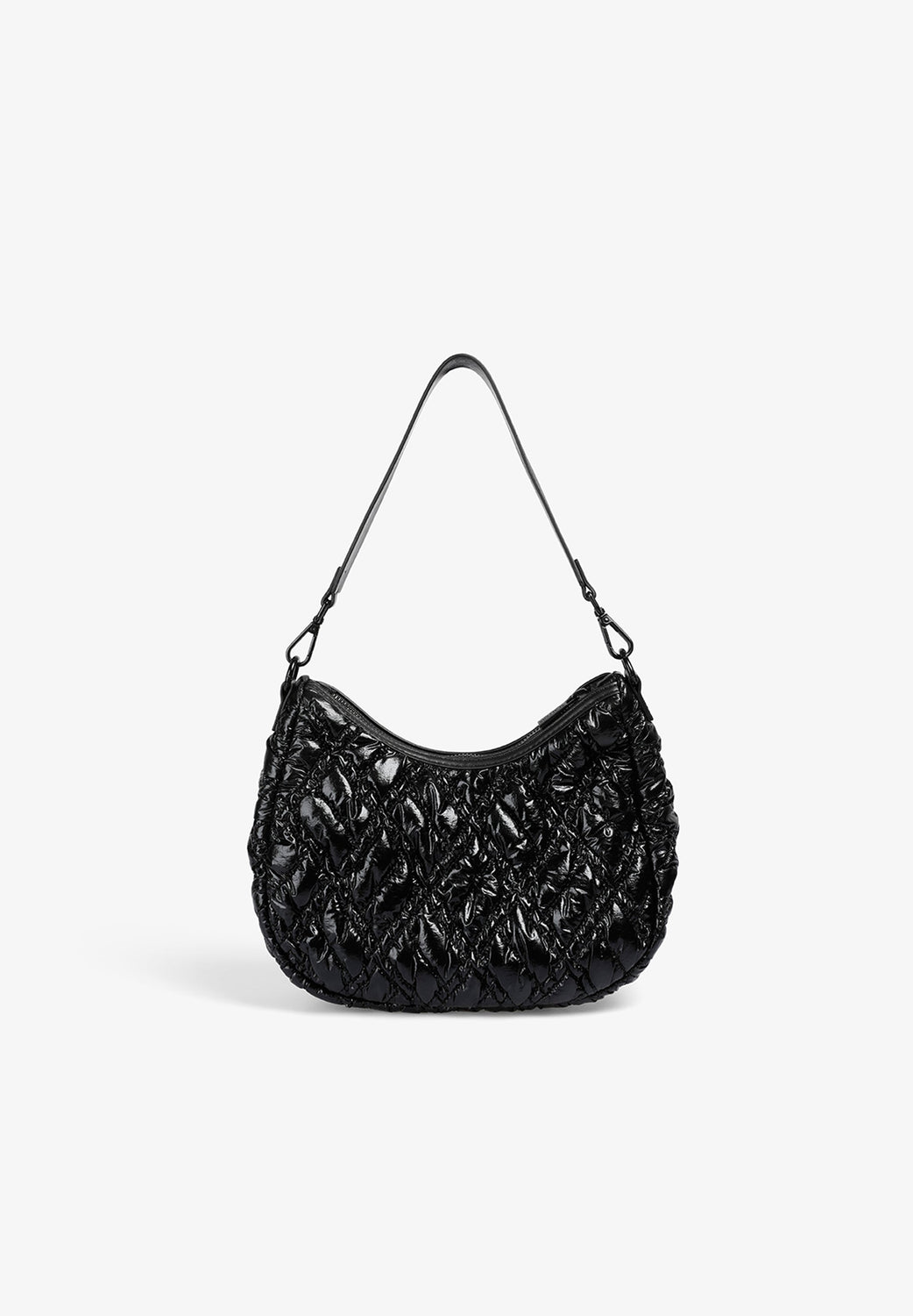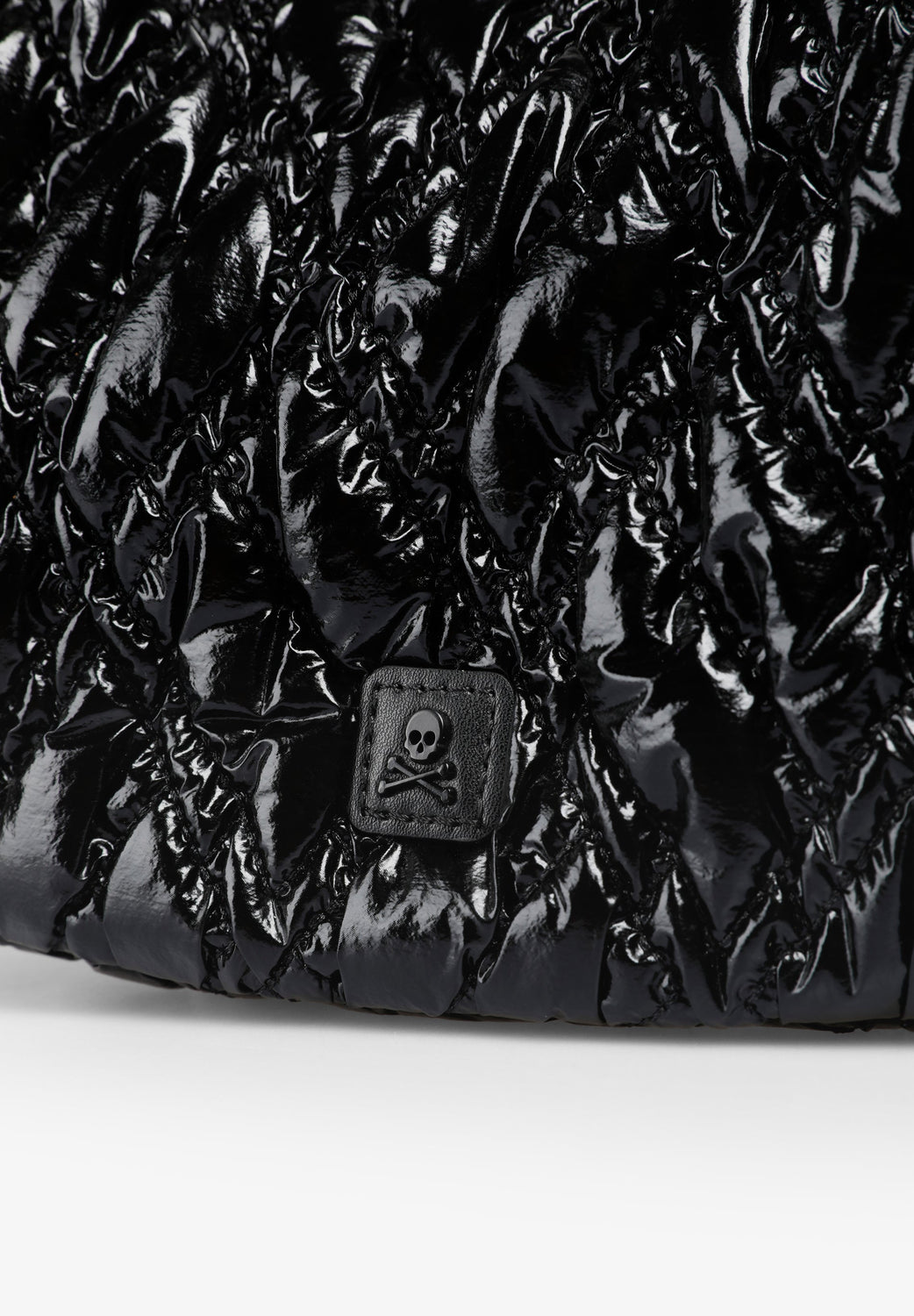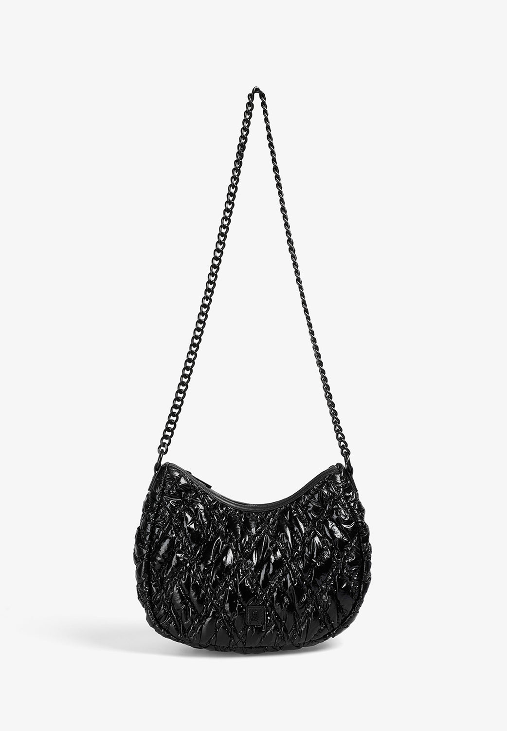 Quilted PU shoulder bag. Inner lining with zip and zip fastening. Double handle, short and chain option. Logo patch detail on the front.