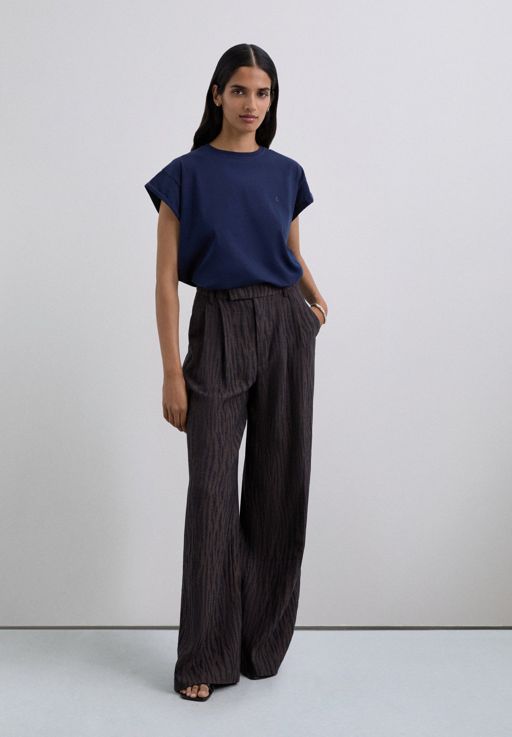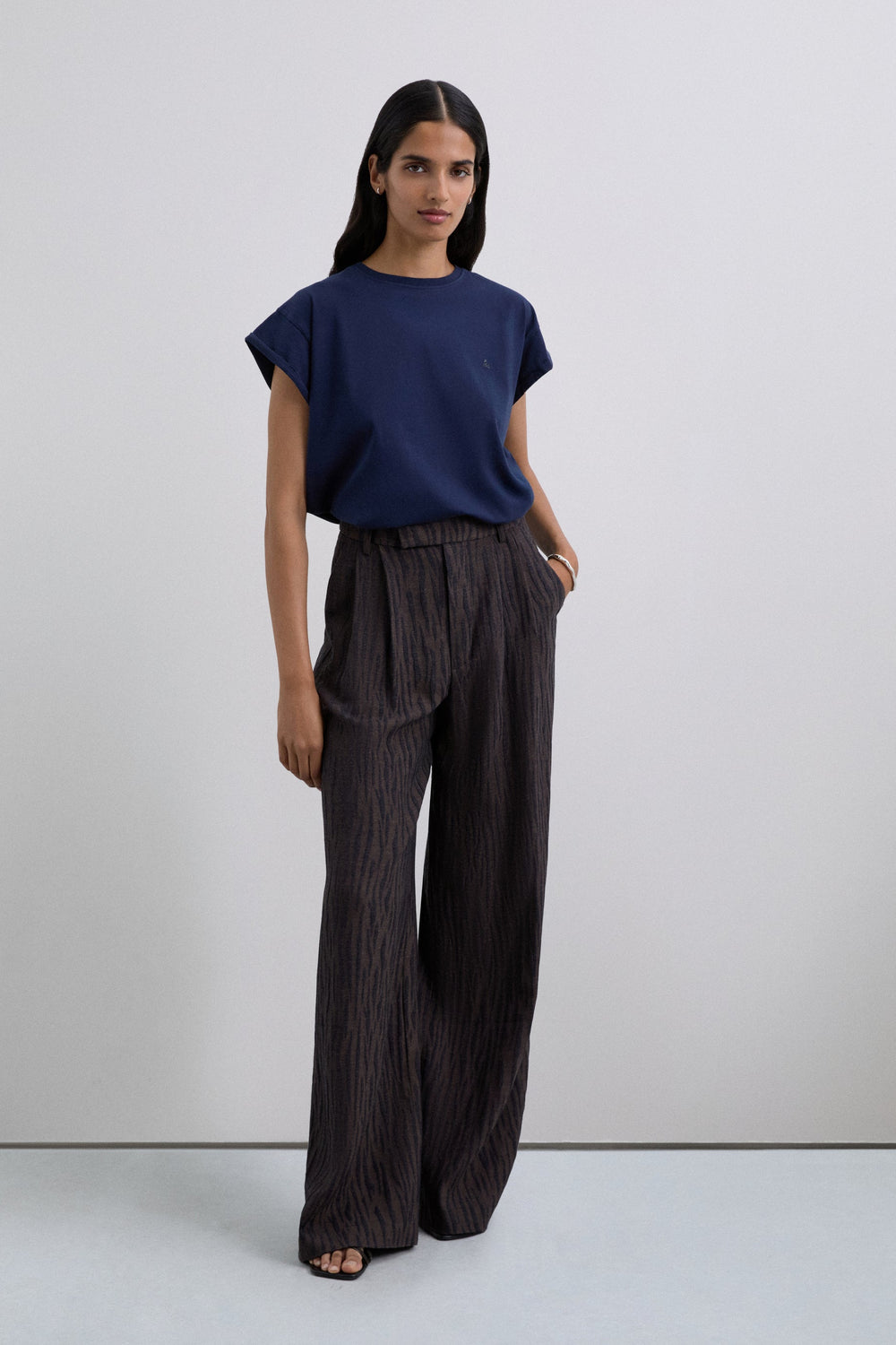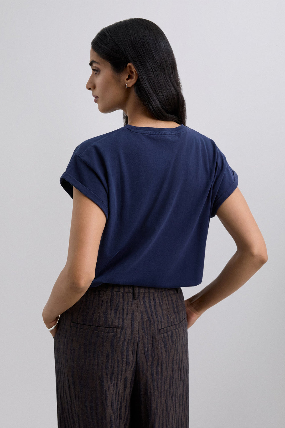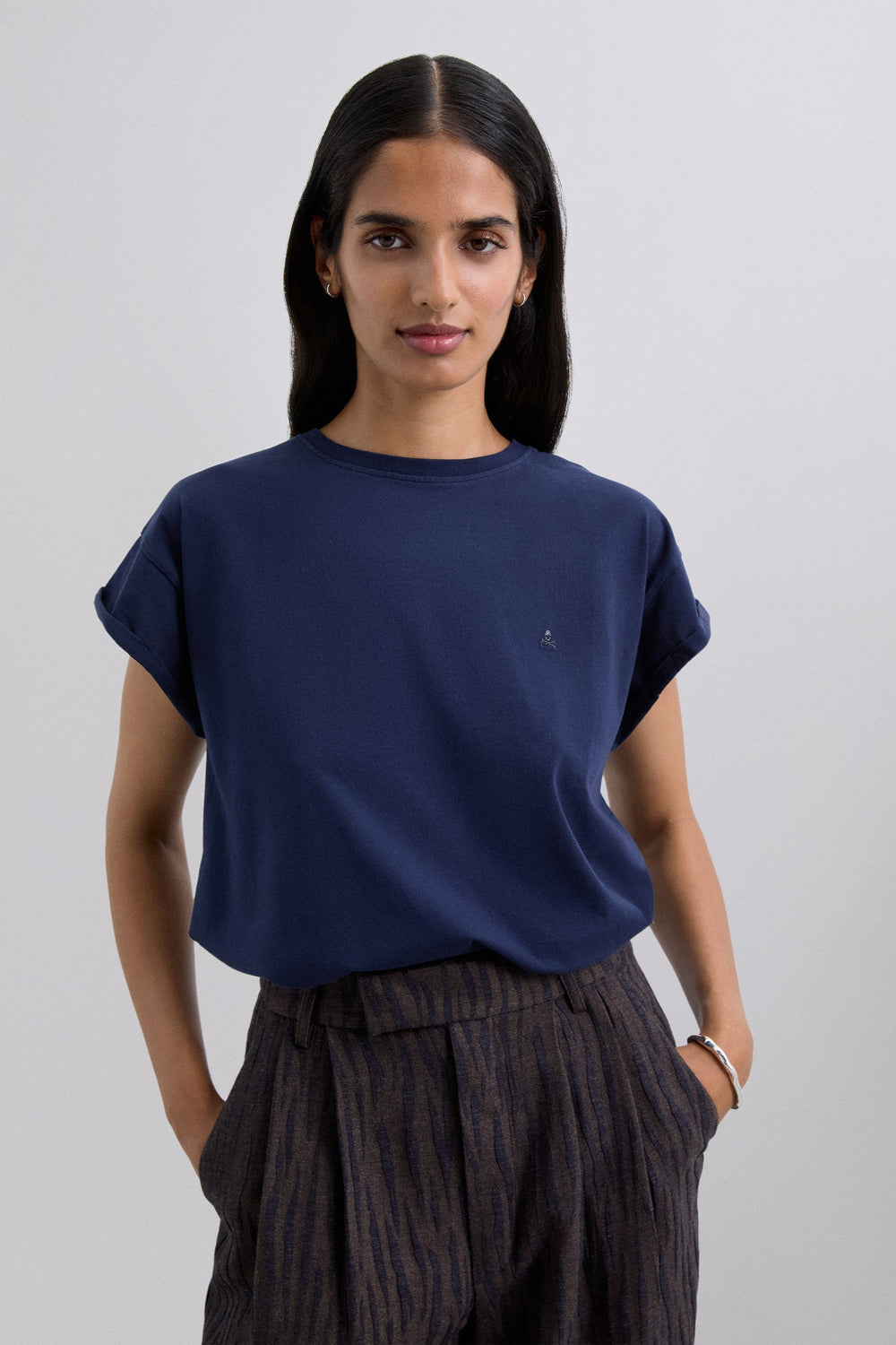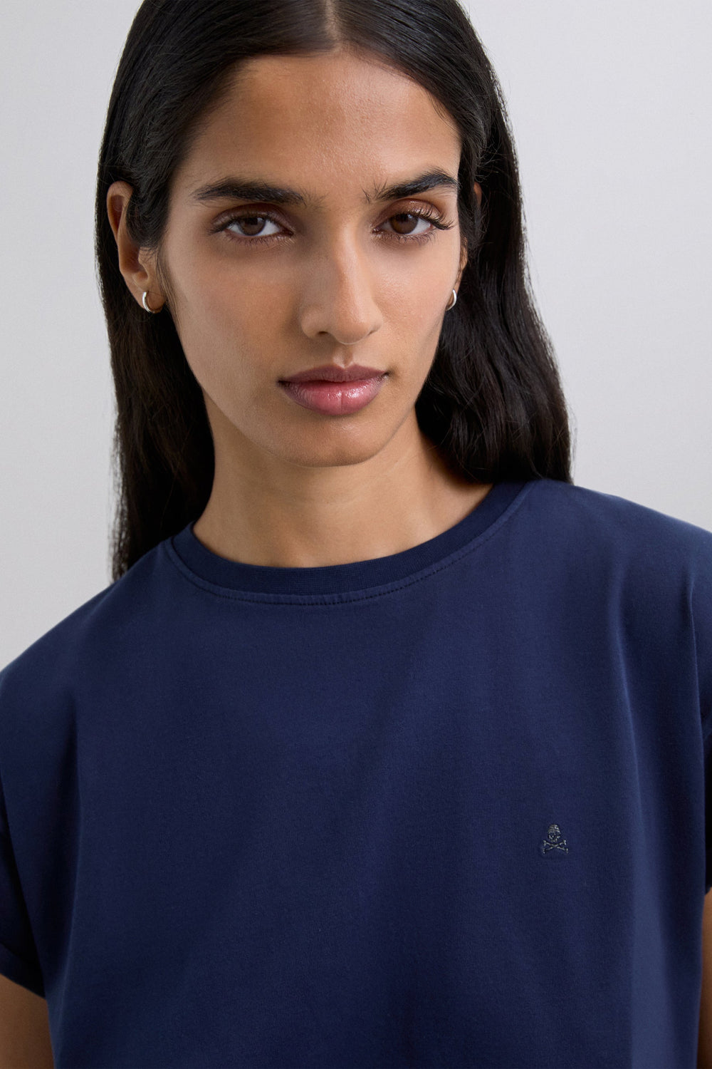 Camiseta de manga sisa. Cuello redondo. Detalle de calavera bordada a tono en pecho.