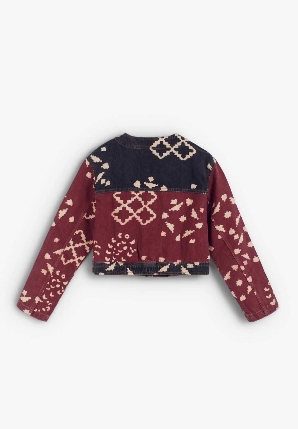 Denim shirt made of 100% BCI cotton with double print. Round collar with no lapels. Long sleeves. Front flap pockets. Front placket with press studs.