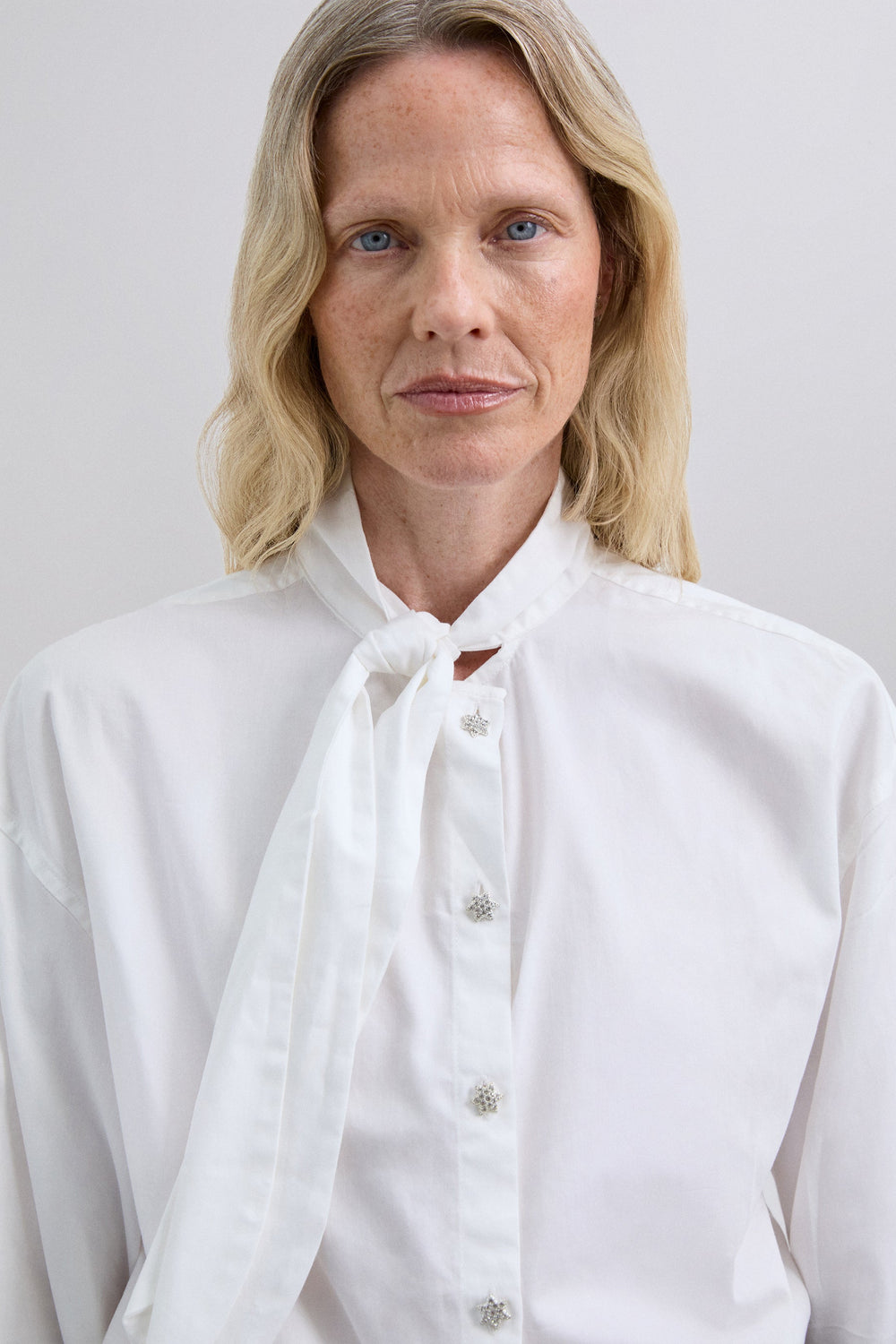 Shirt made of 100% BCI cotton. Regular fit. Collar with bow. Button fastening. Long sleeves with buttoned cuffs. Darts at the back.