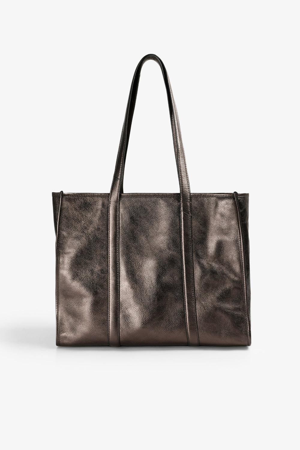 Tote bag made from 100% leather. Double straps and zip fastening. Metal logo detail on the front.