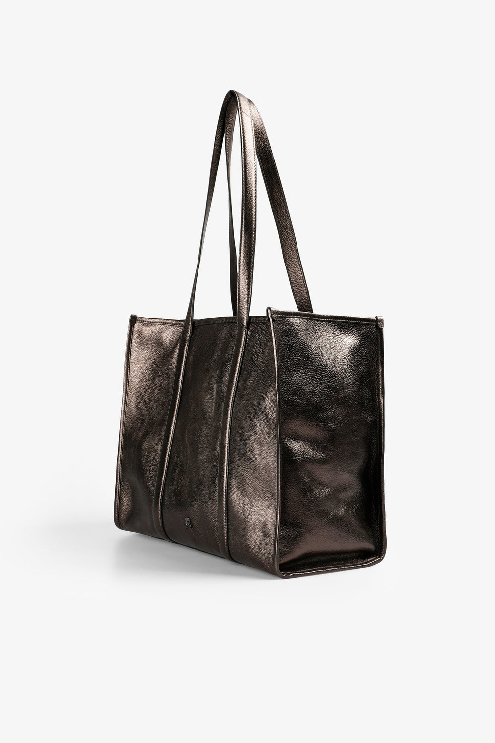 LEATHER AND METALLIC TOTE BAG
