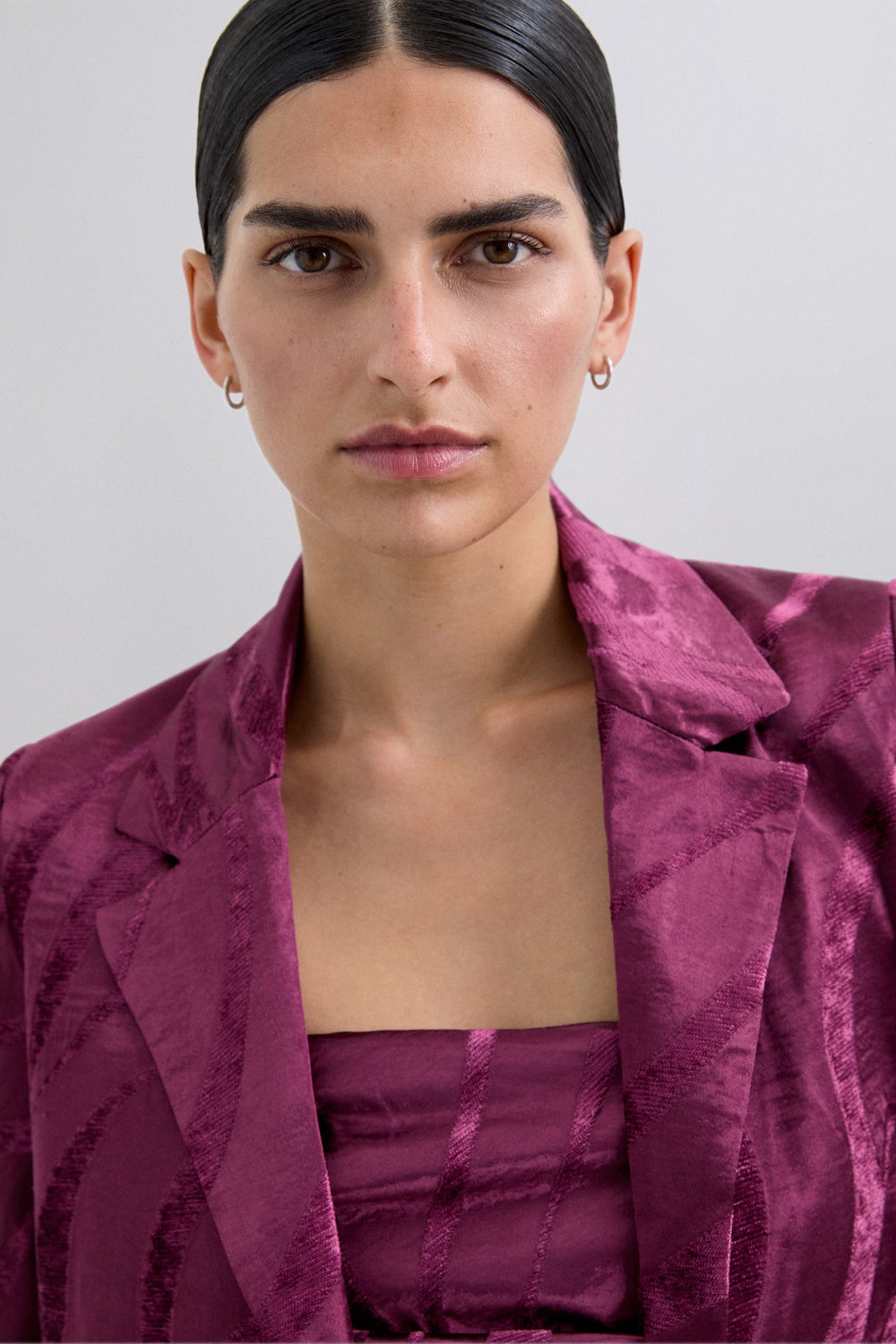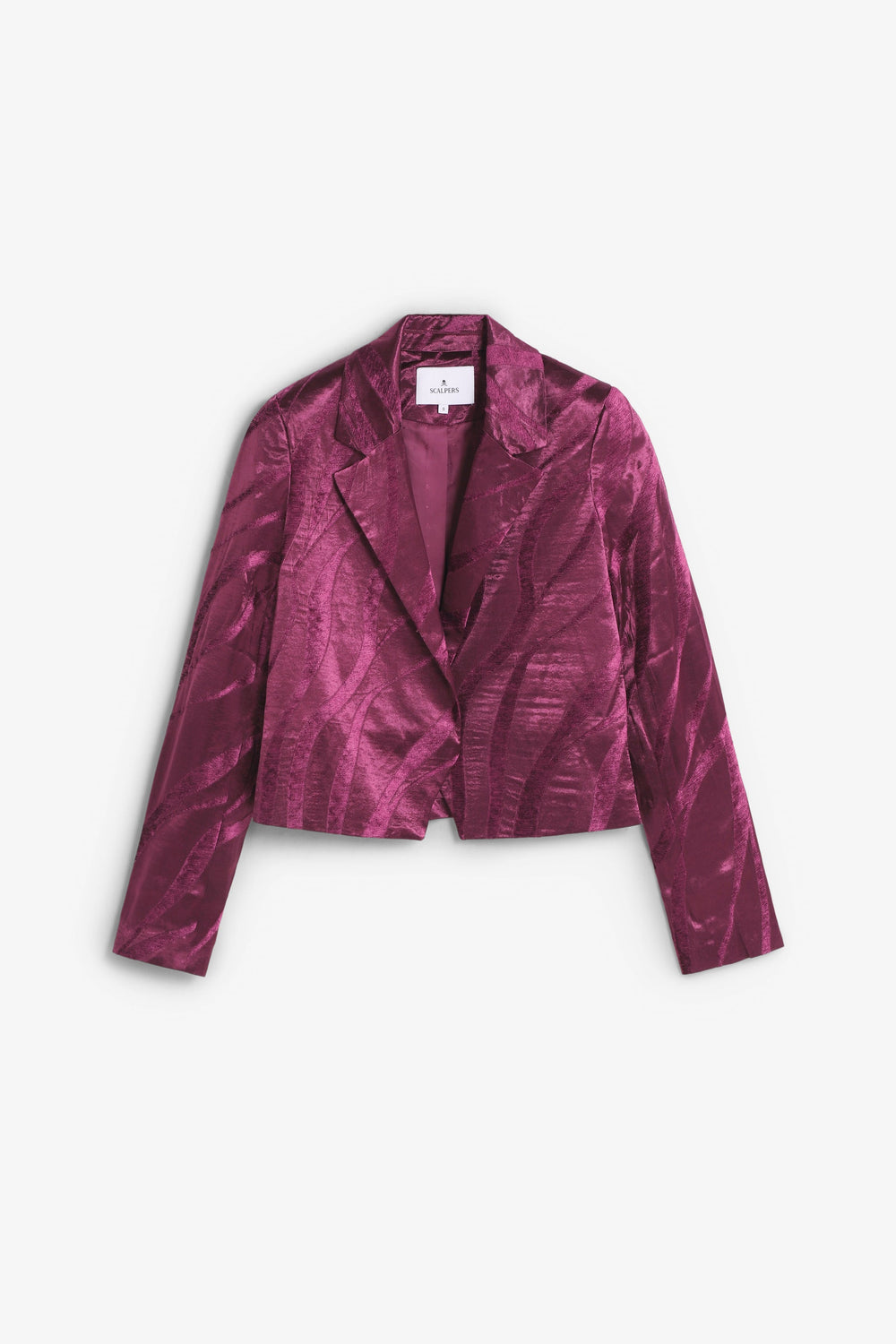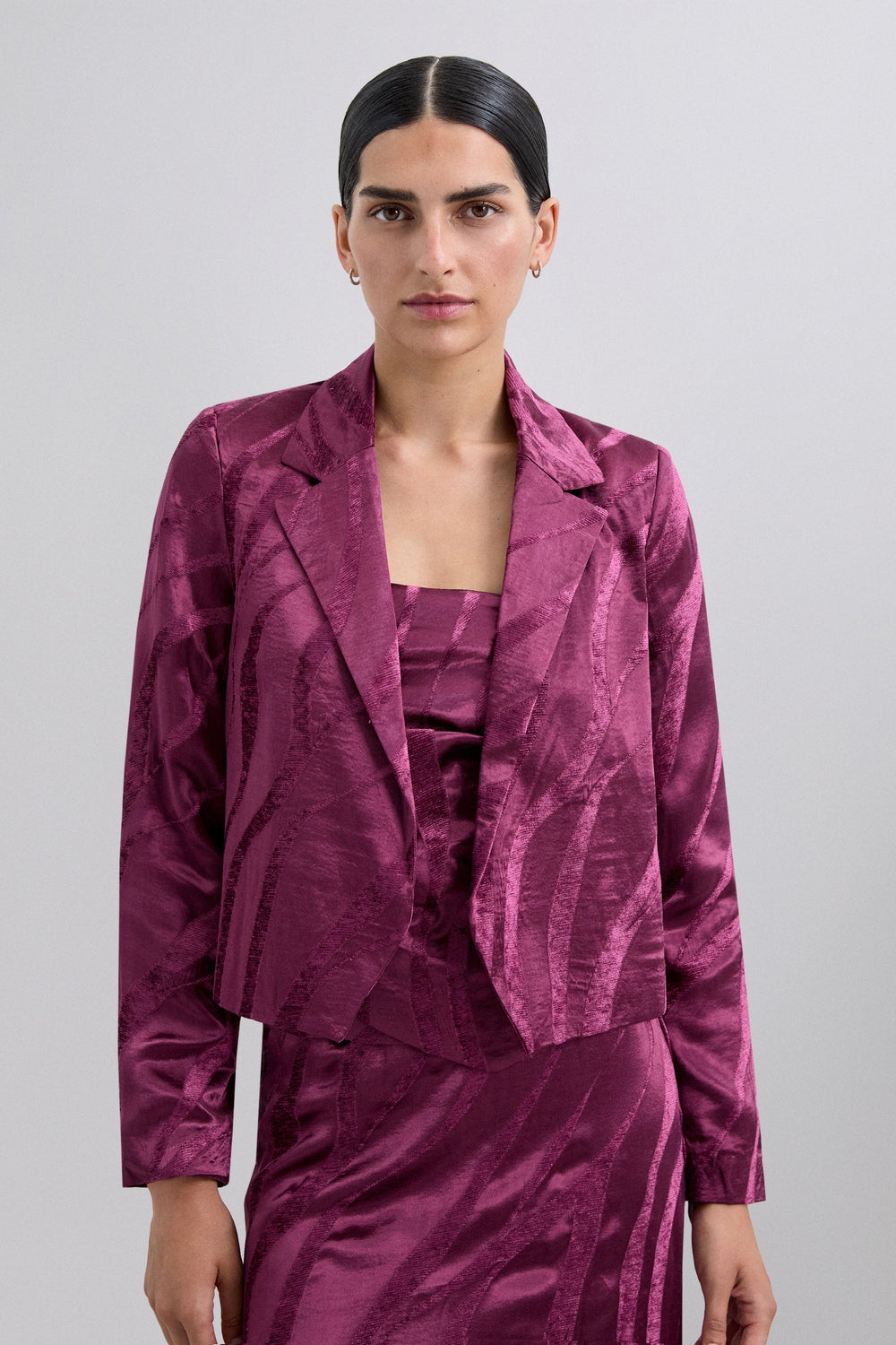 Cropped blazer with jacquard. Regular fit, peaked lapel collar. Long sleeve