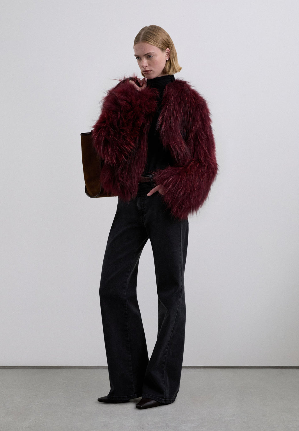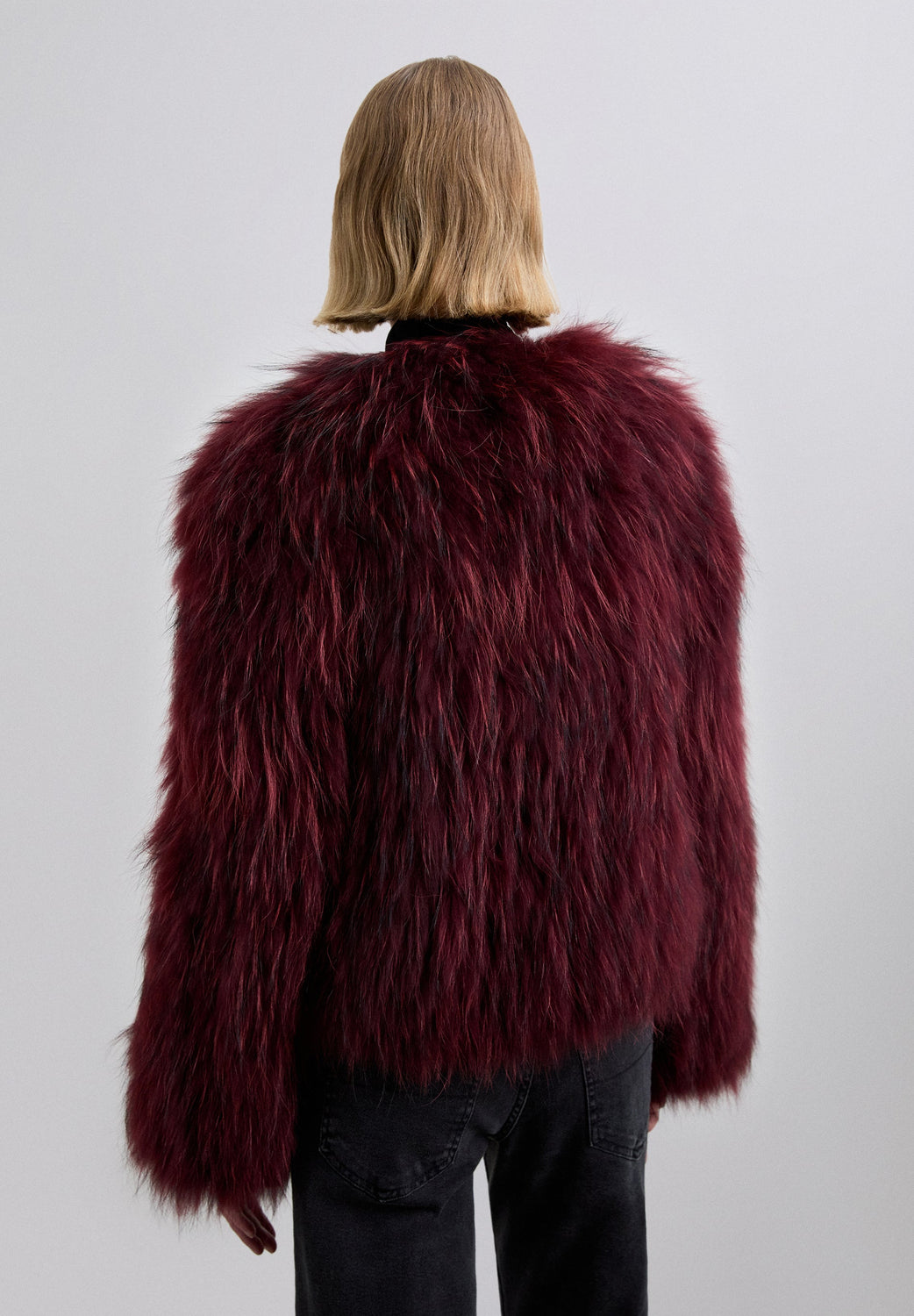 Jacket made of 100% natural racoon fur. Long sleeves. Mid-hip length.