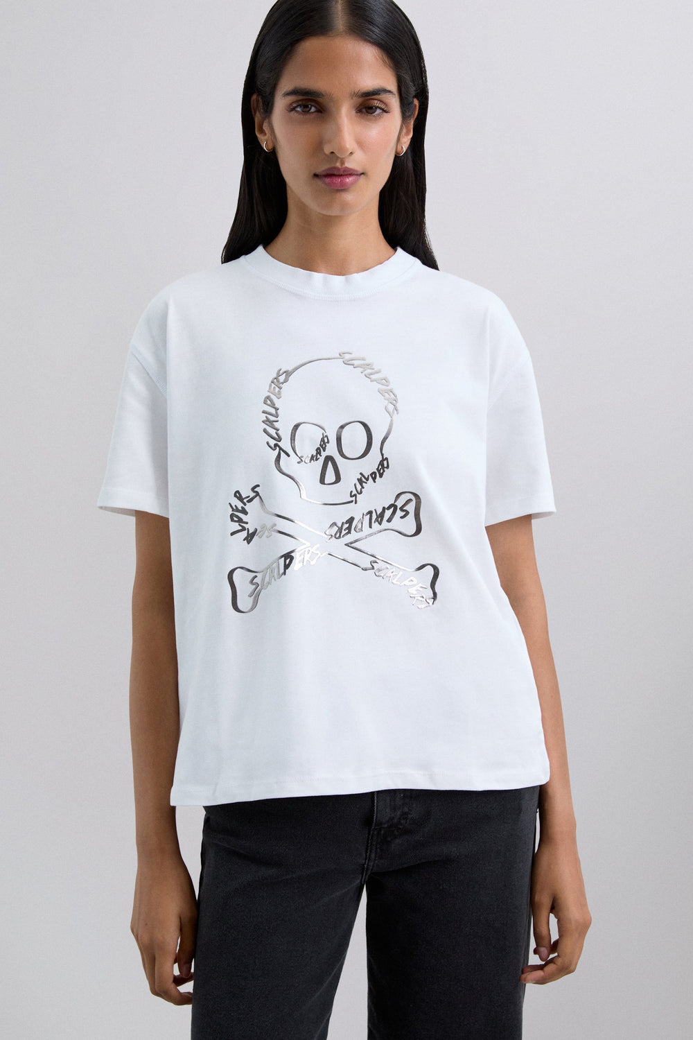 T-shirt made of 100% cotton. Regular fit. Front skull print. Round neck. Short sleeve. Stitching detail on the back.
